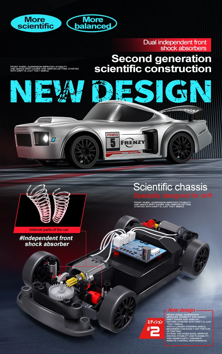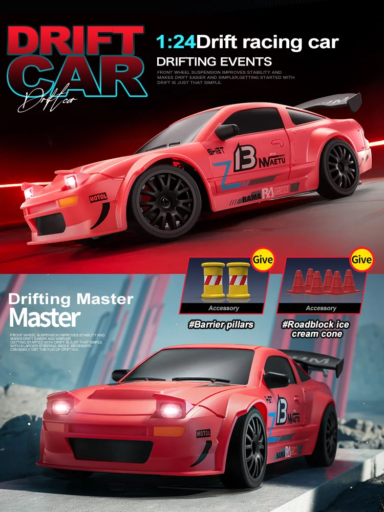 1/24 Scale Remote Control Toy Road Vehicle RC Mini Drift Car Racing Game Drifting Speed Model with LED Light and Drift Tires