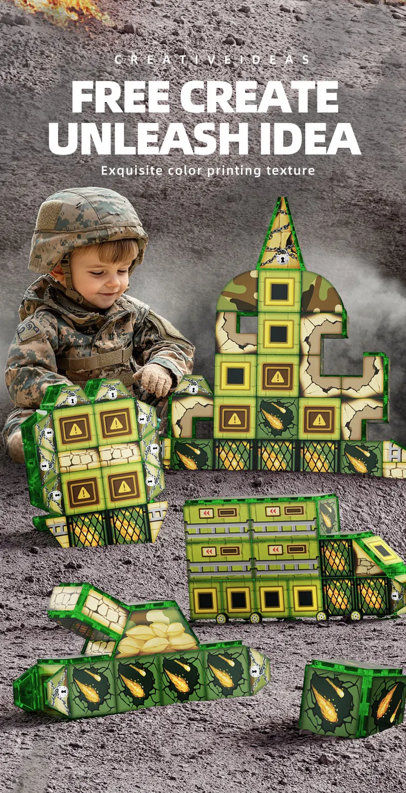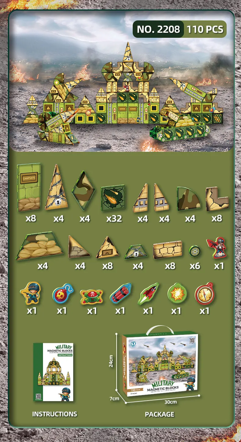 110pcs Army Building Blocks Set Montessori Toys Transparent 3D Magnetic Tiles Magic Magnetic Building Blocks for Kids