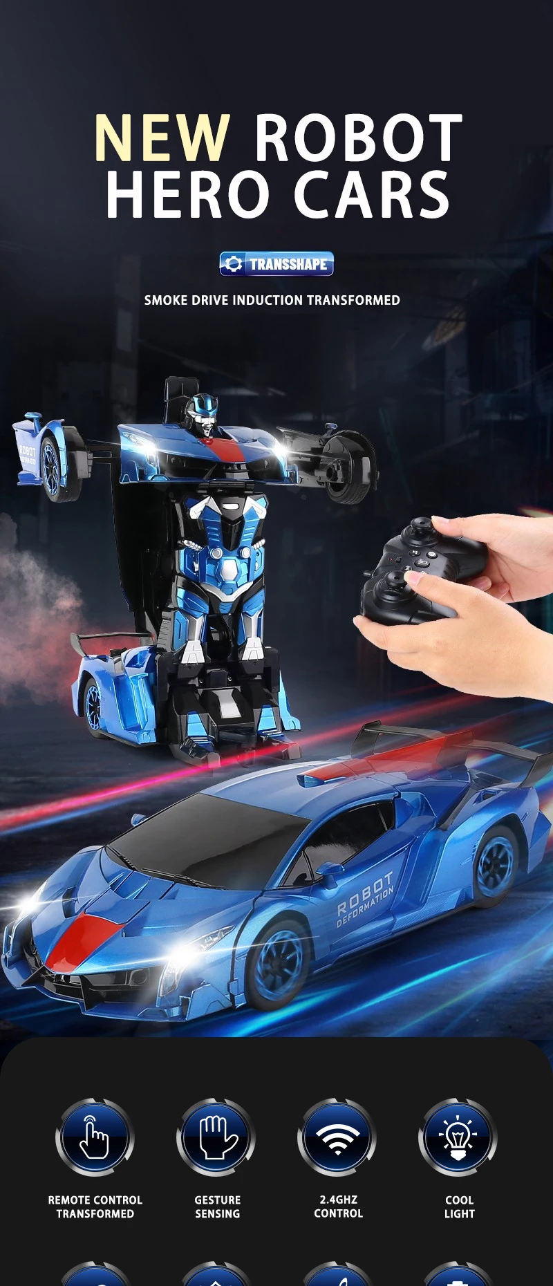 2.4Ghz Electric Deformation Rc Car Toys Cool Smoke Effect Robot Car Remote Control Transformed Sport Toy Car for Kids