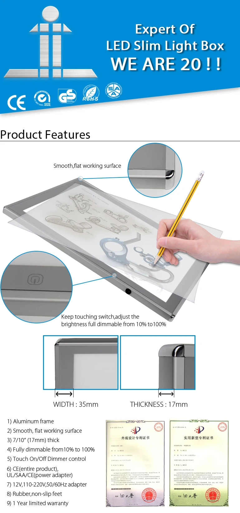 application: light box for paper tracing, for kids led light toys