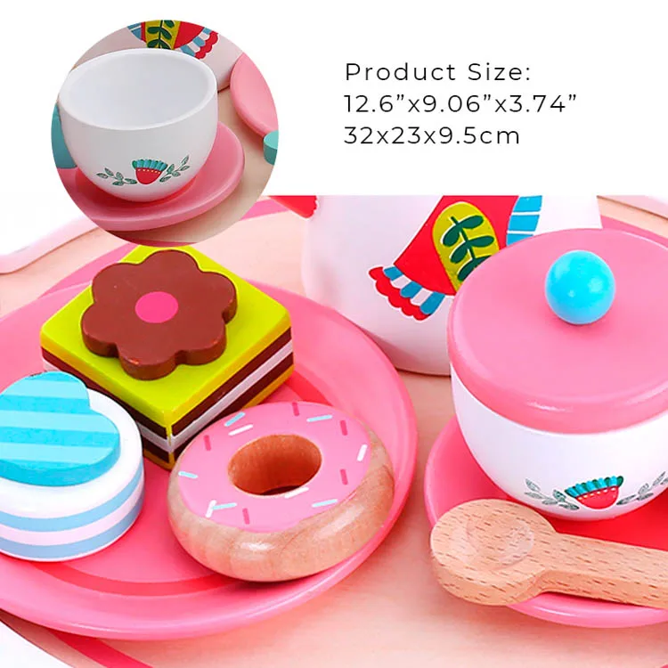 2024 Hot Sale Wooden Pretend Play Afternoon Tea Set Scene Toy for Children