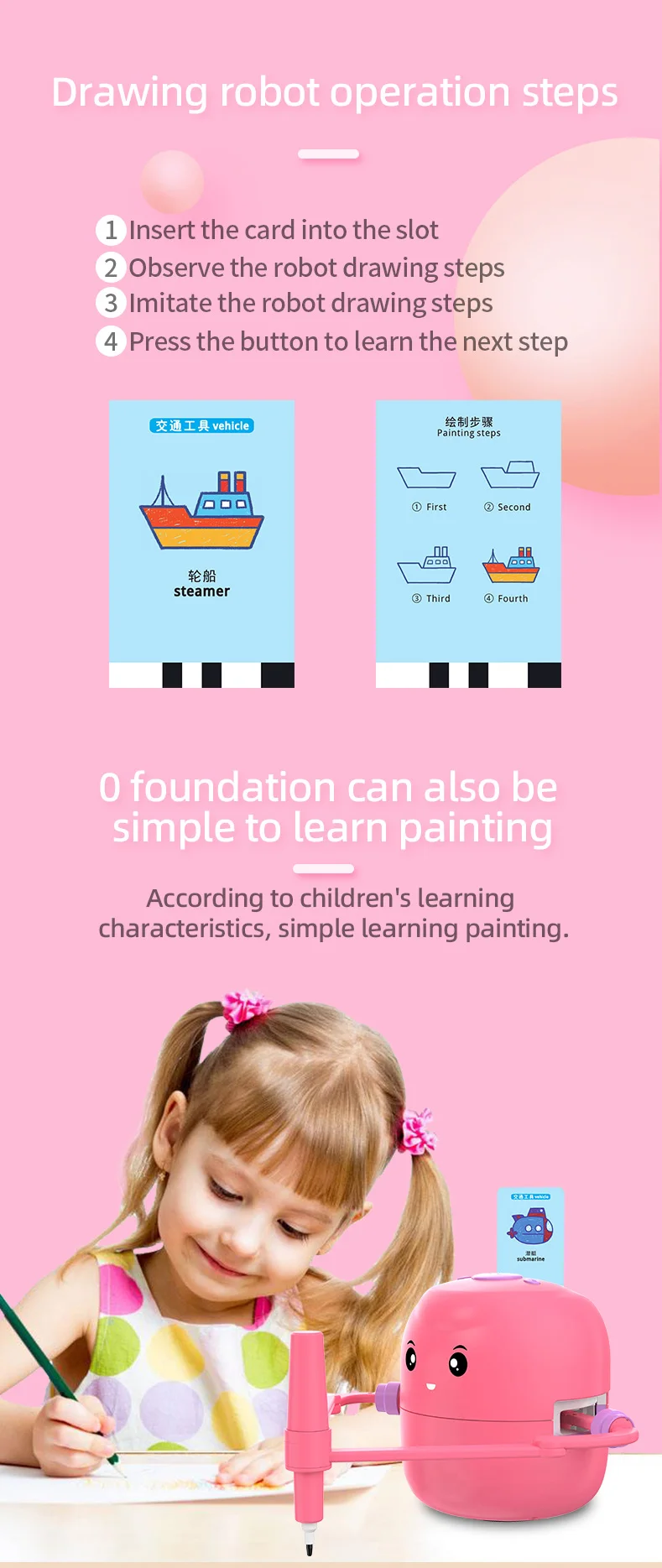 English Automatic Drawing Robot Children's Technology Art Learning Toy with 100 Word Cards