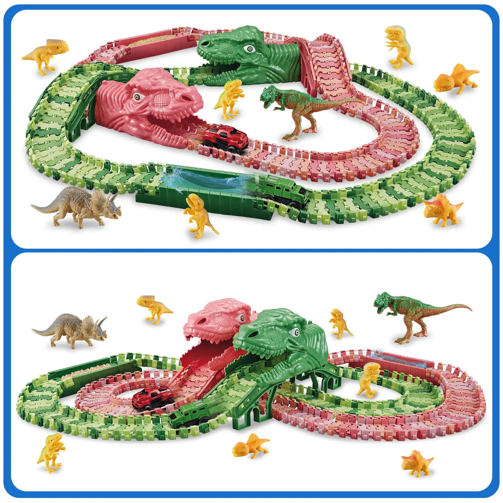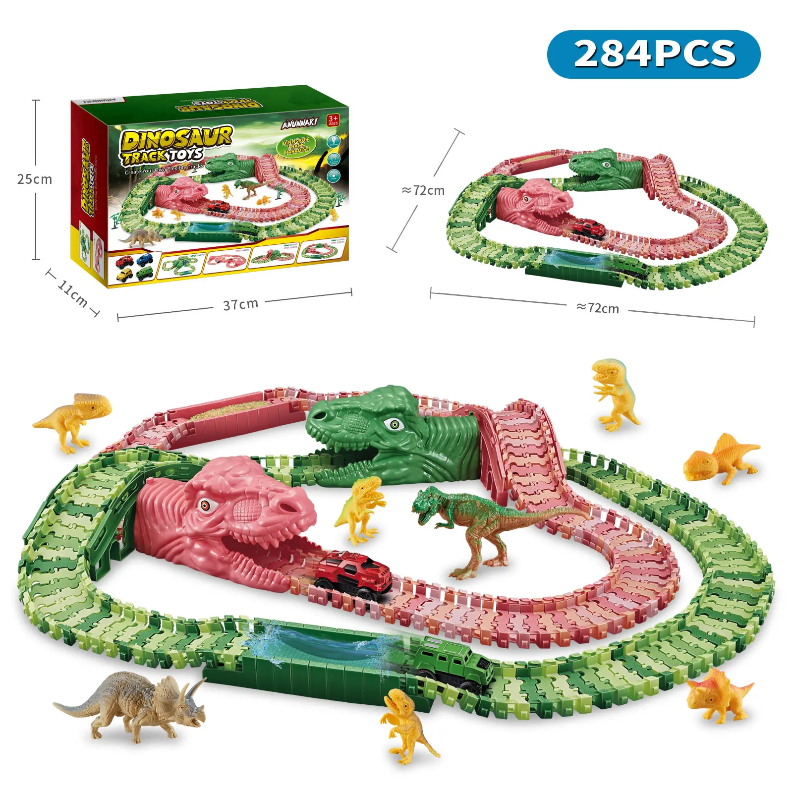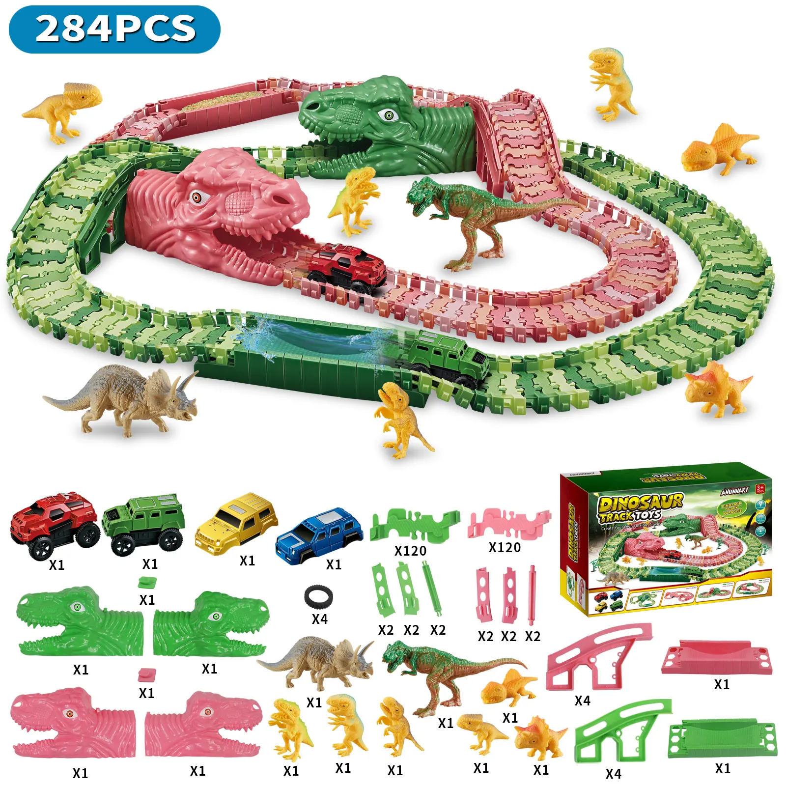 284 PCS Climbing Dinosaur Track Toy Set Flexible Road Race Dinosaur World Play Set Best Gift Train Car Toys for Boys