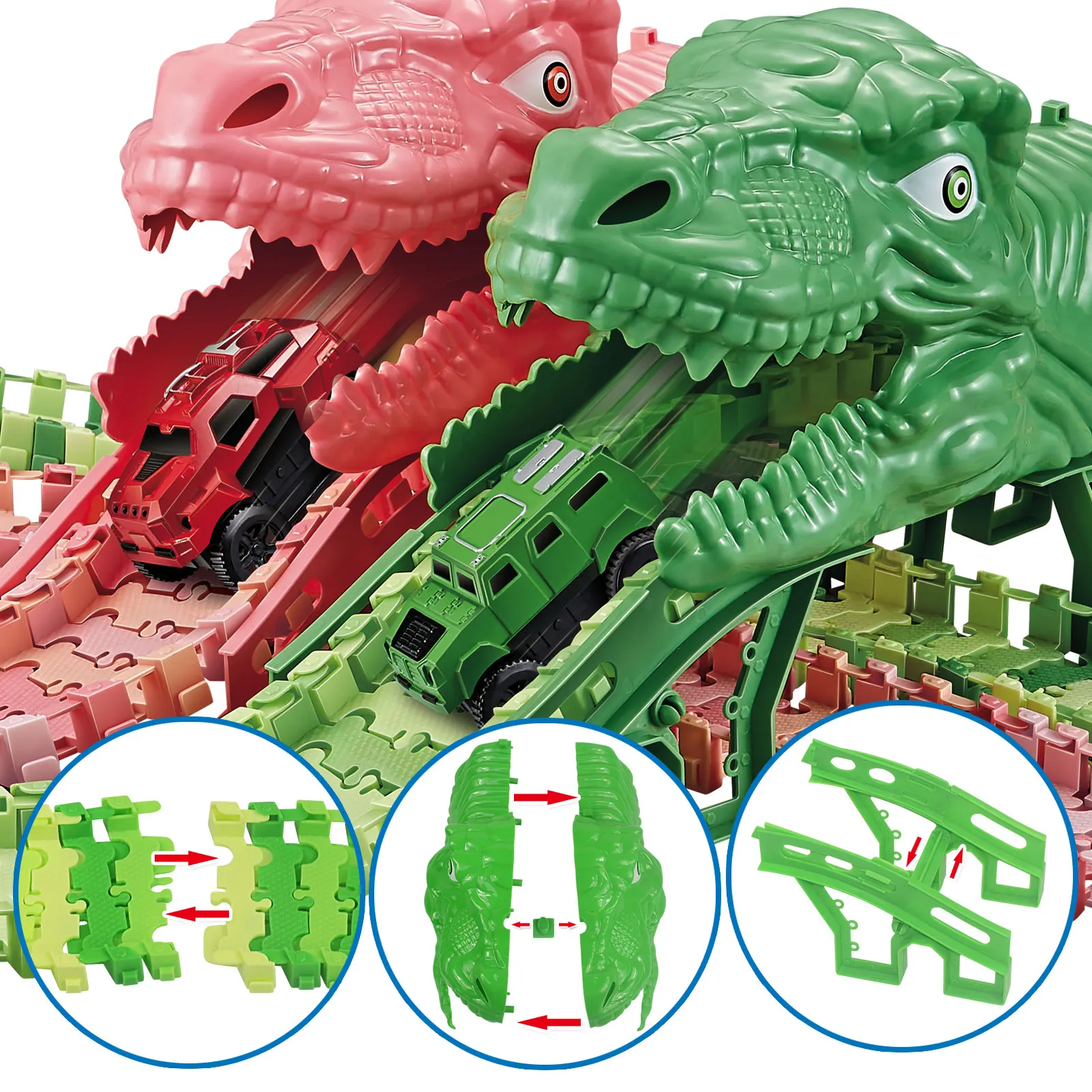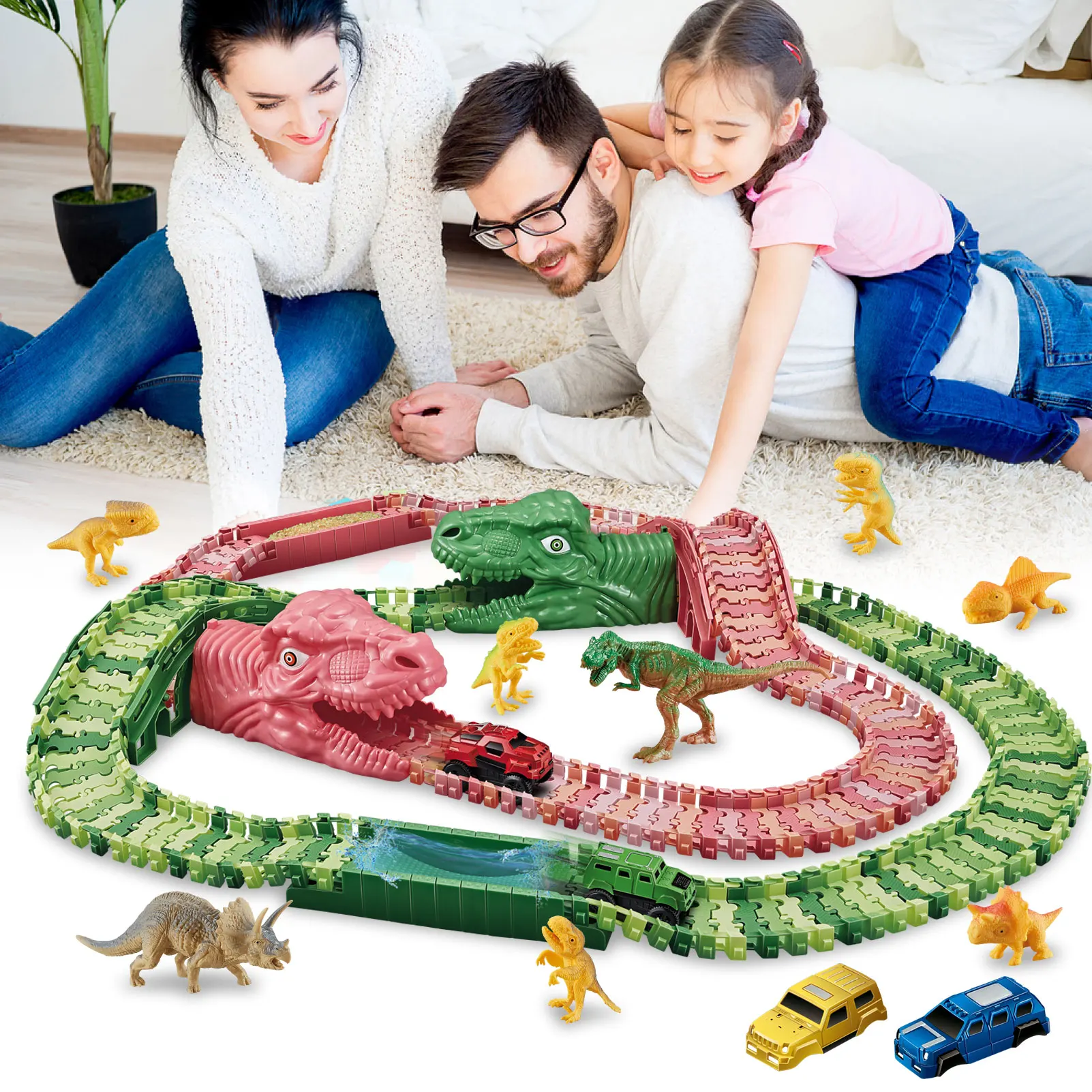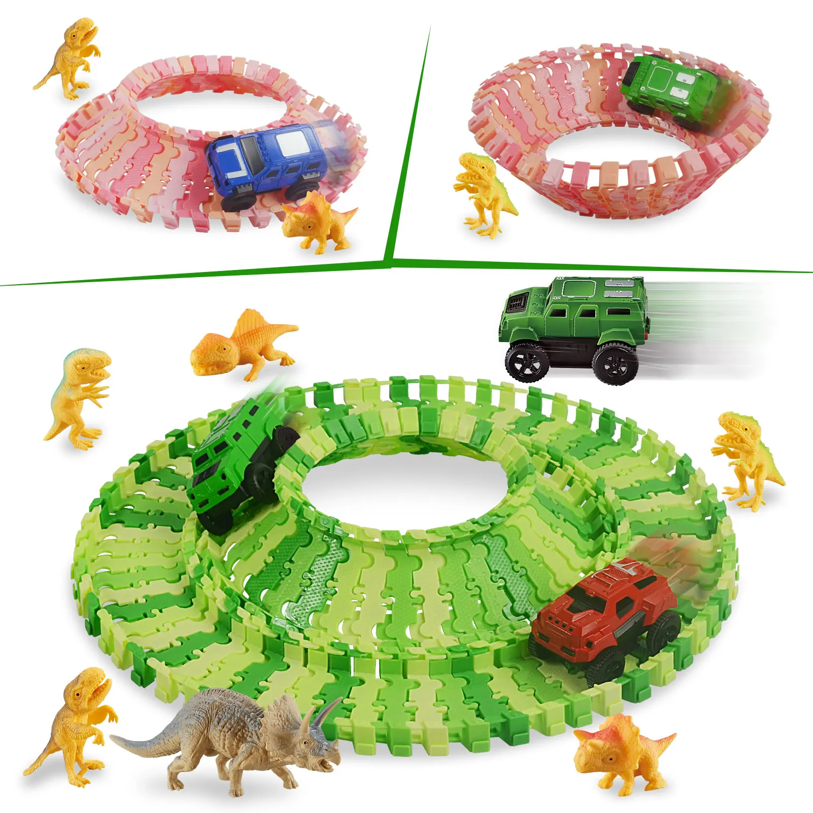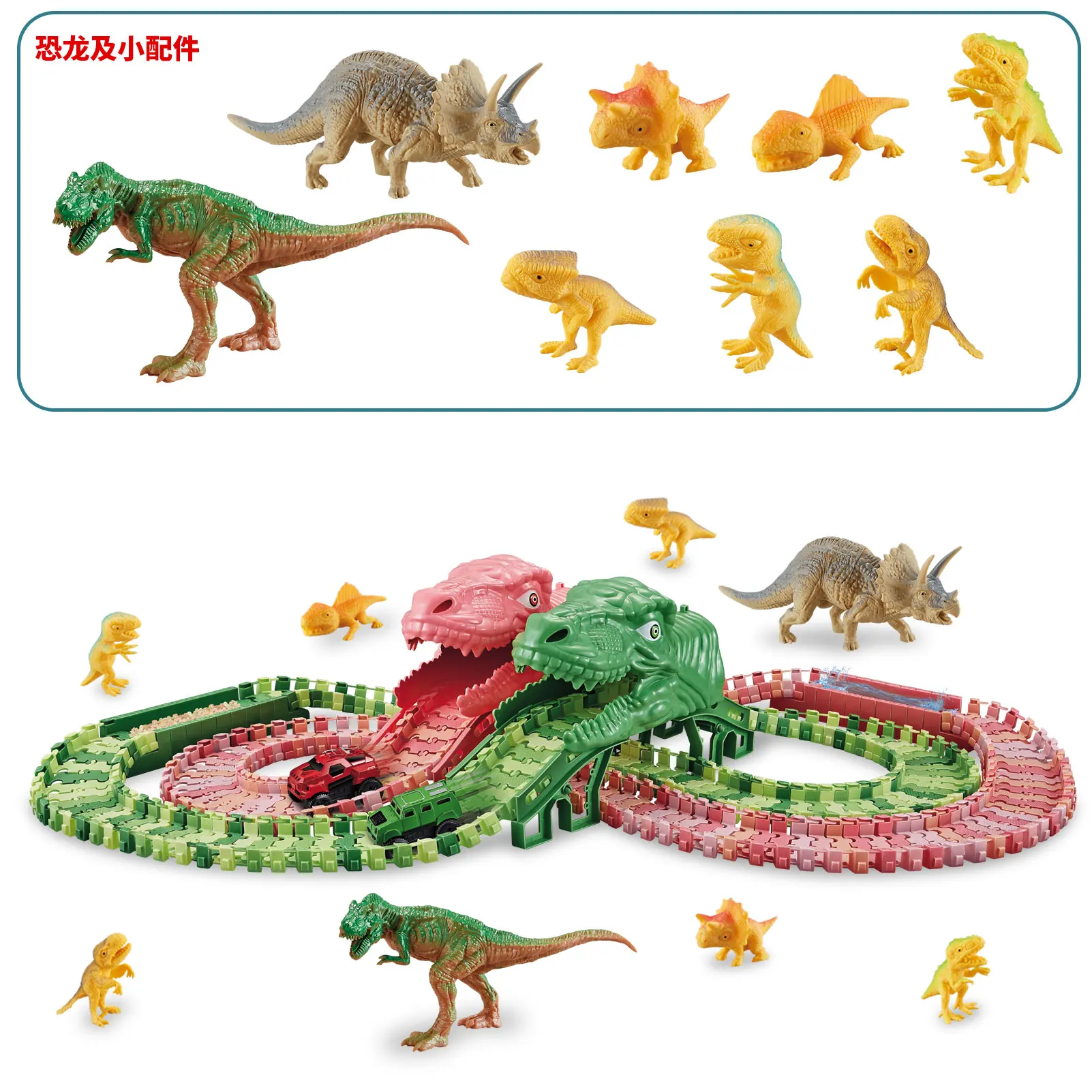 284 PCS Climbing Dinosaur Track Toy Set Flexible Road Race Dinosaur World Play Set Best Gift Train Car Toys for Boys