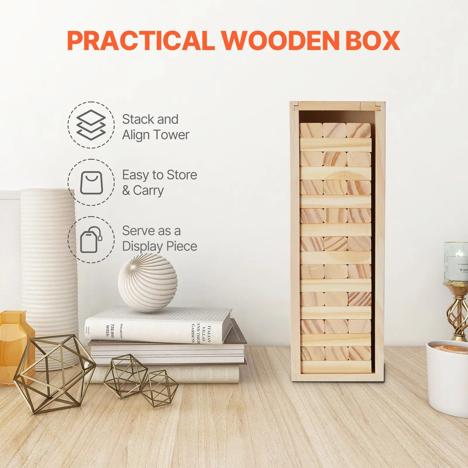 54-Piece Tumbling Timber Tower Game Pine Wood Stacking Blocks Crate for Kids’ Play and Fun!