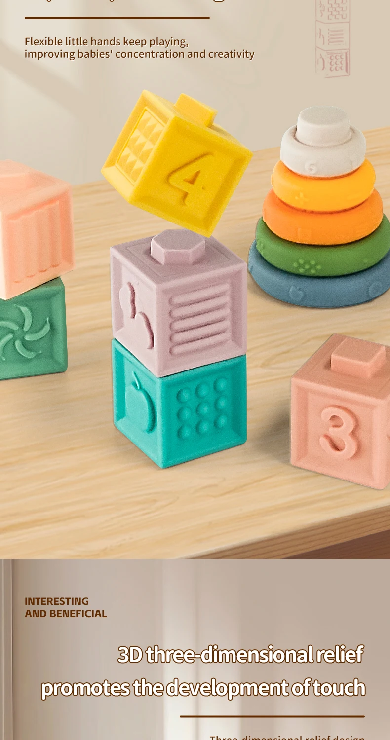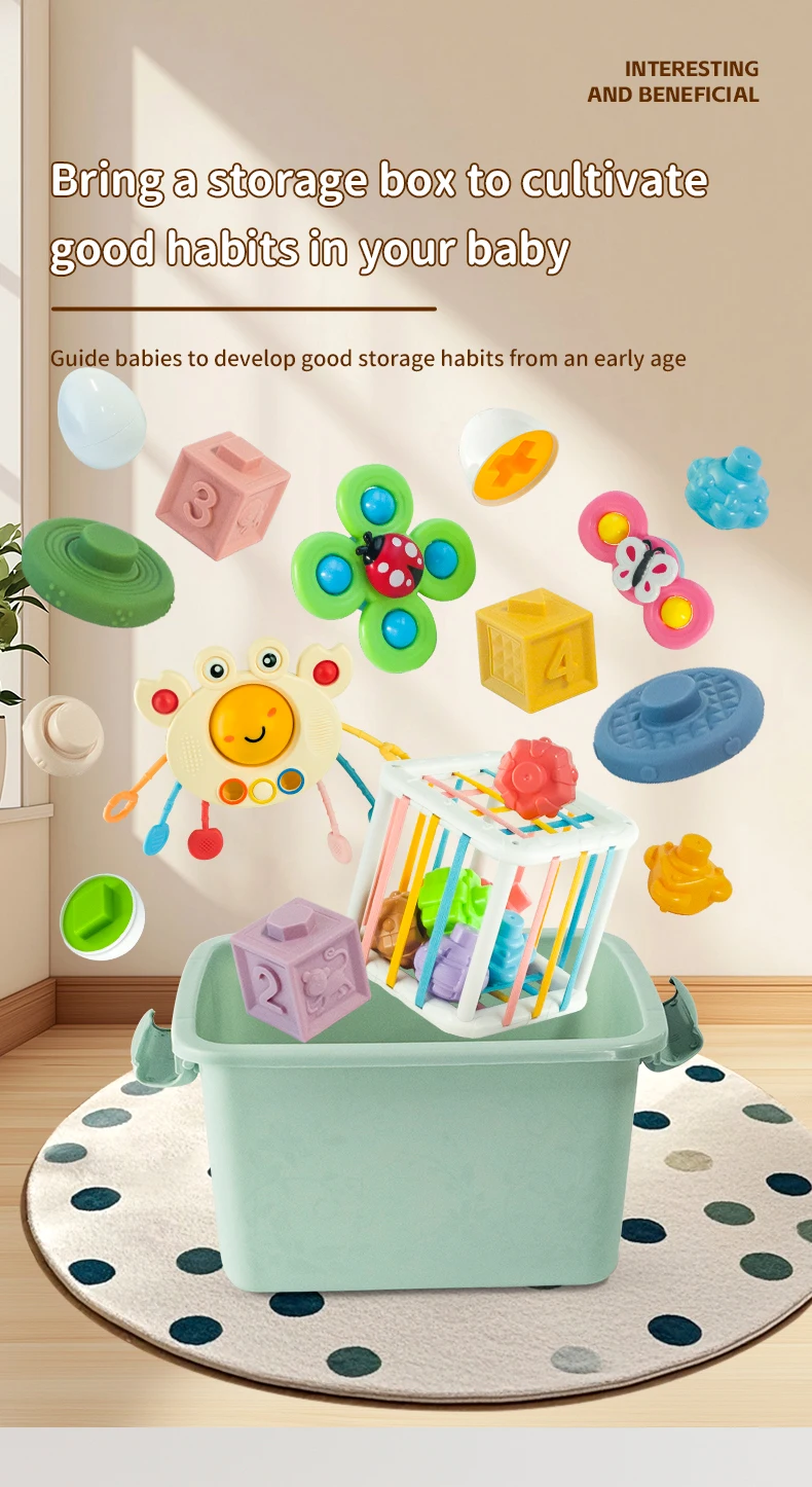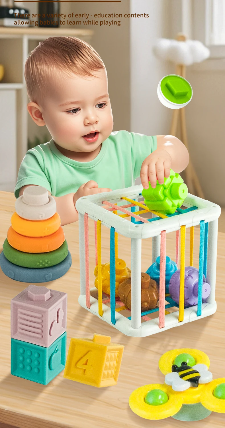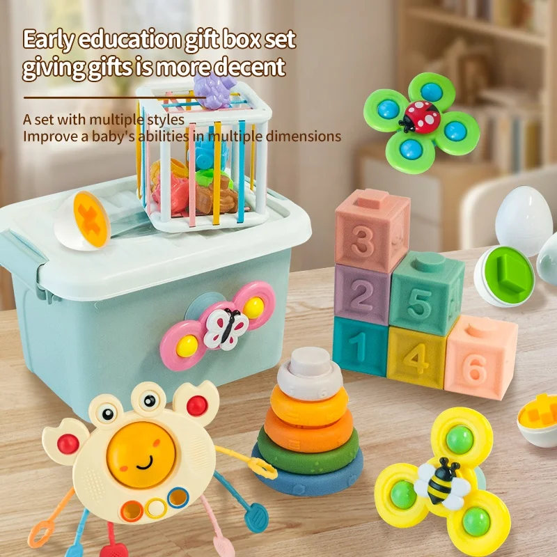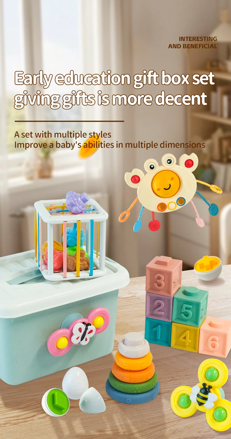 Baby Early Education Montessori Toy 6 in 1 Multifunctional Infant Soft Rubber Sensory Training Toys Stacking Toy Set With Box