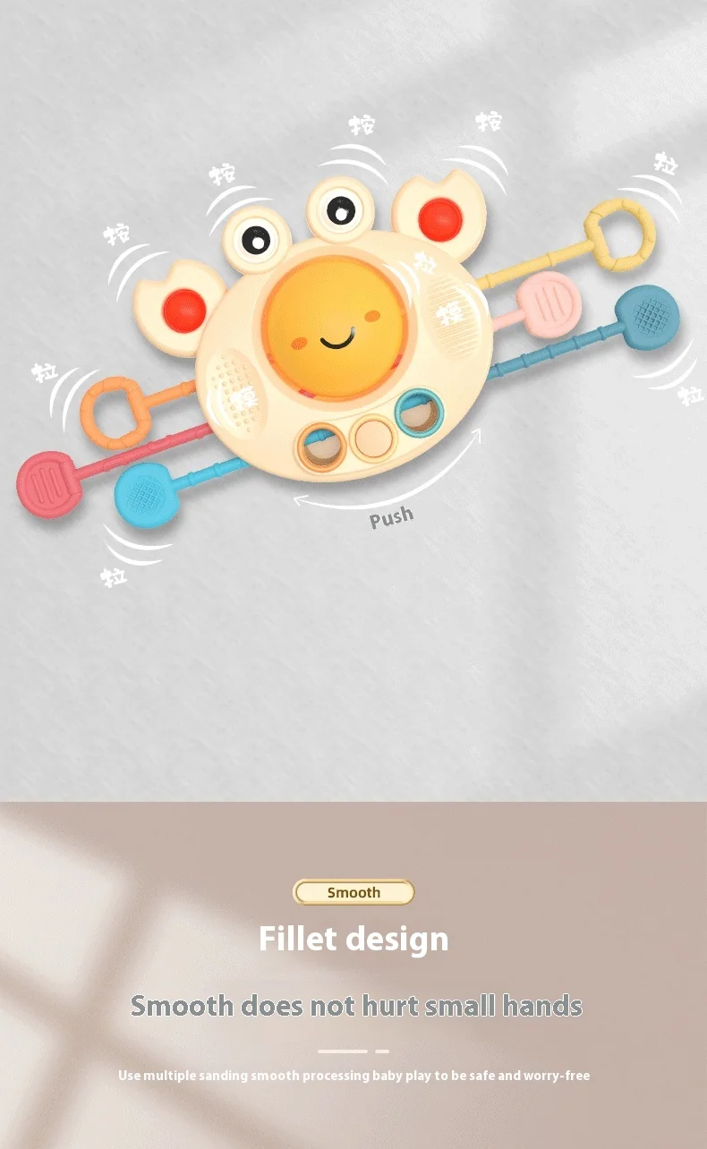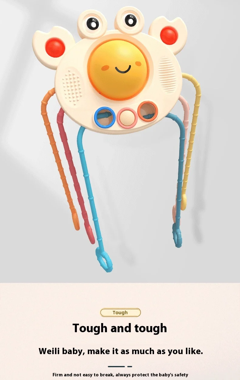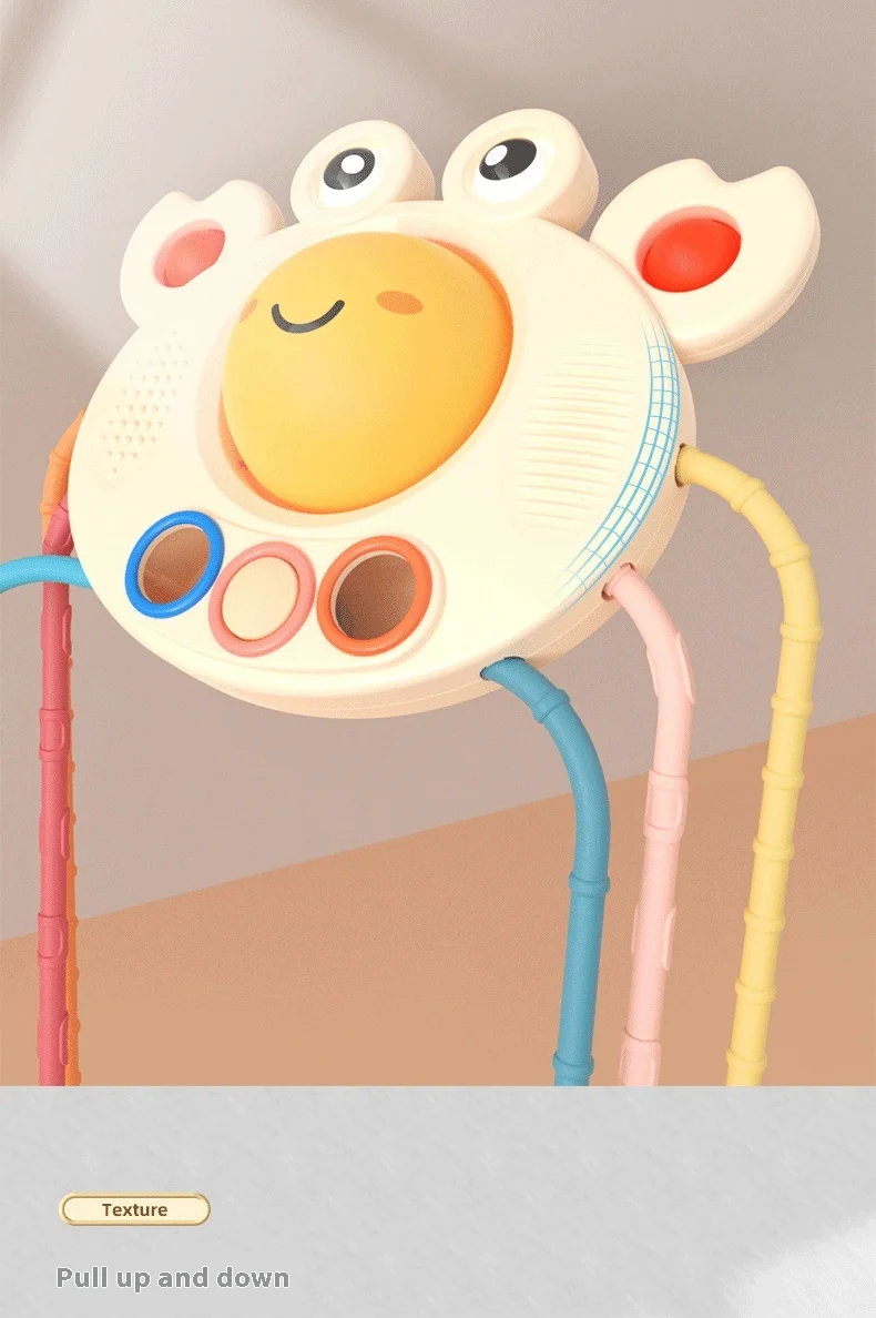 BJQ Cute Crab Soft Silicone Baby Rattles Sensory Pull String Montessori Educational Toy for Early Finger Training
