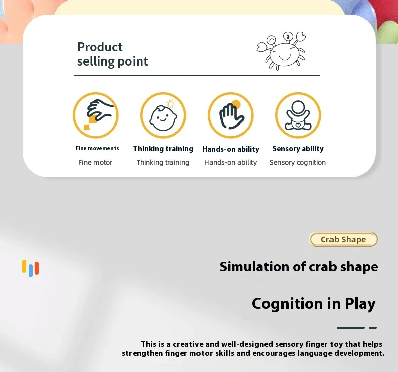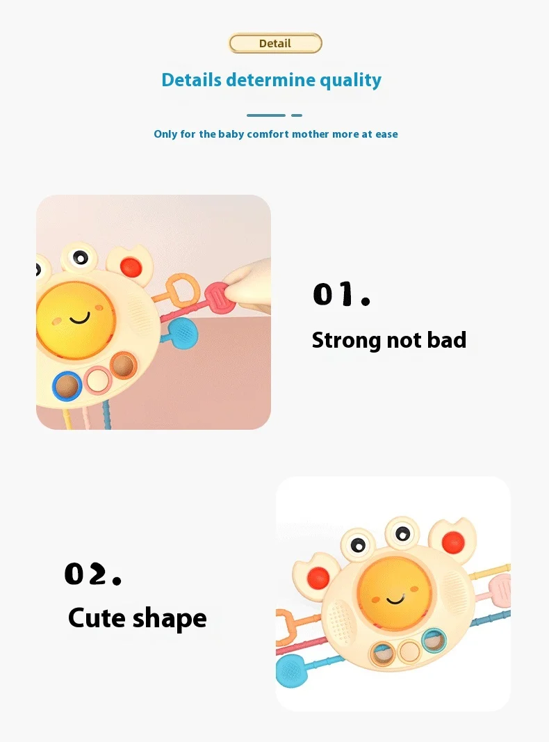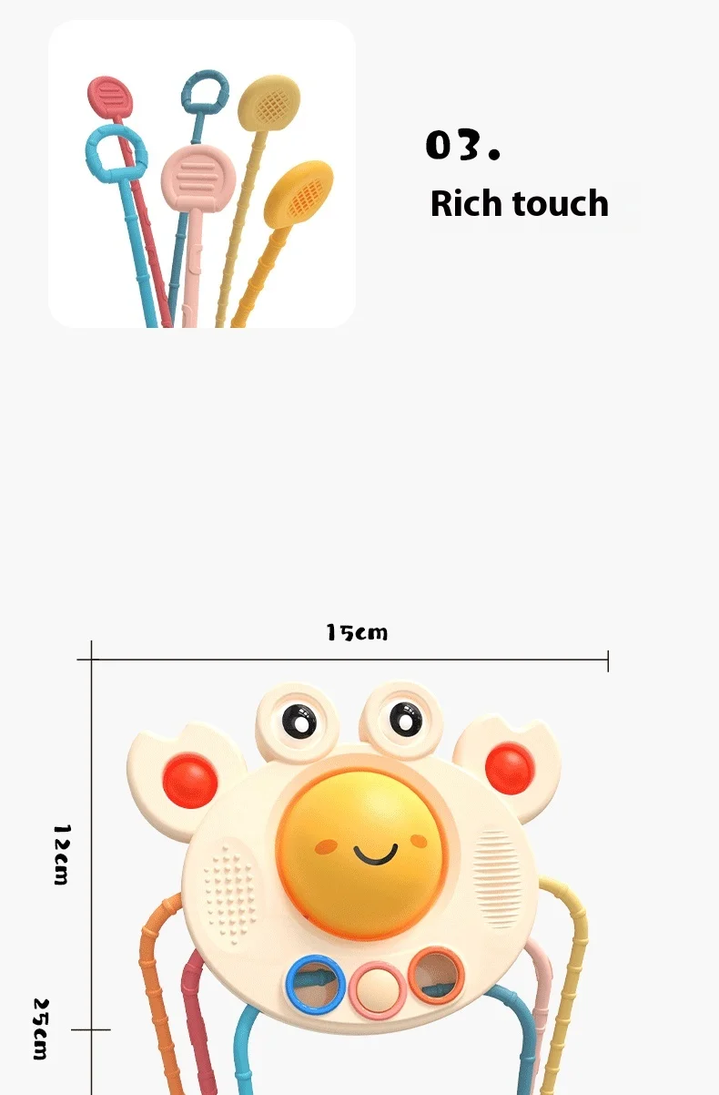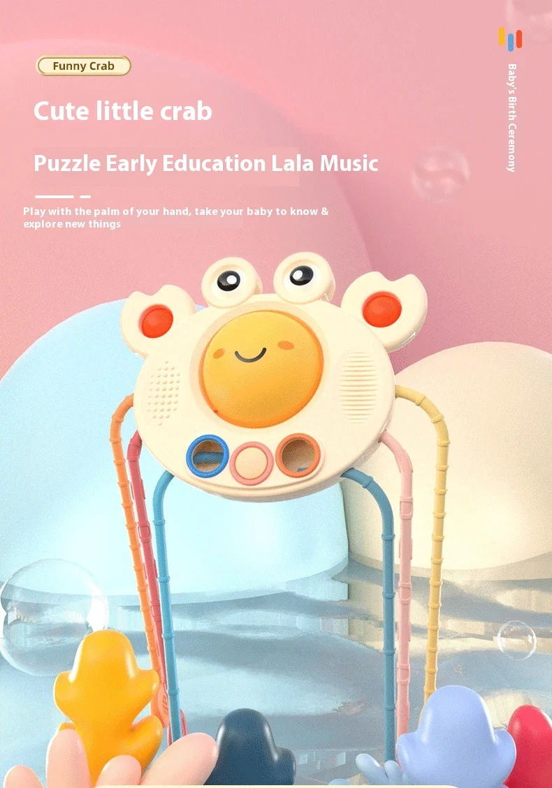 BJQ Cute Crab Soft Silicone Baby Rattles Sensory Pull String Montessori Educational Toy for Early Finger Training