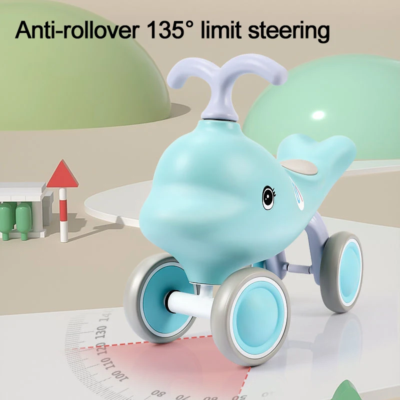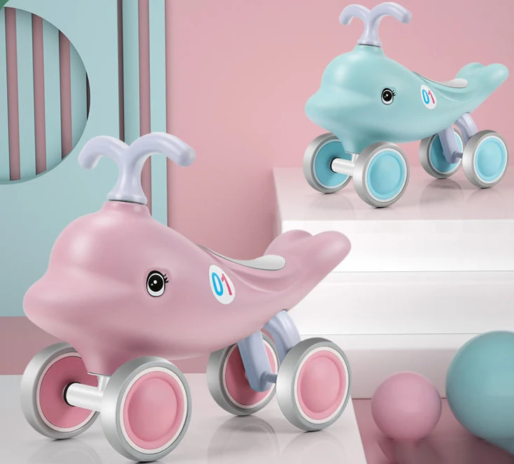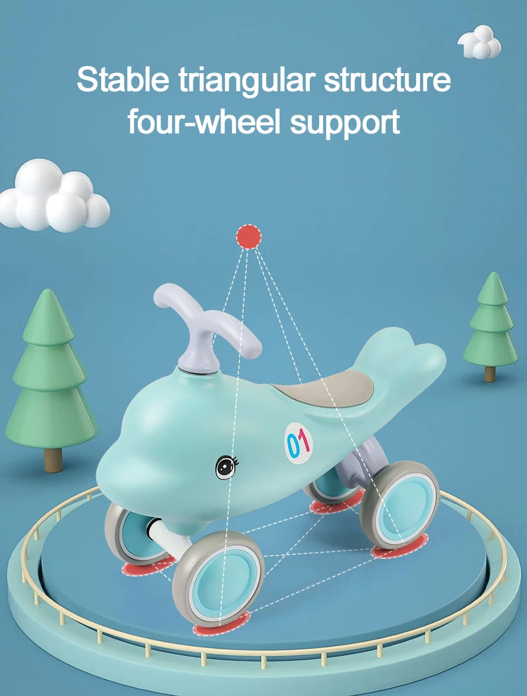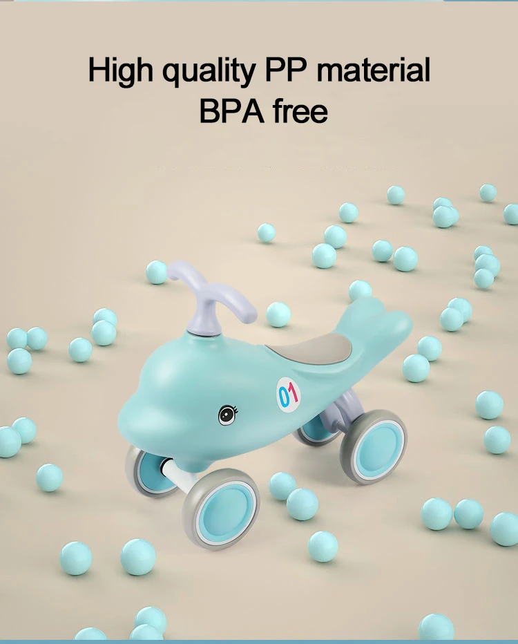 Child Cute Dolphin Ride on Walker Swing Toy Car Anti -Rollover Baby 4 Wheel Sliding Wiggle Twist Scooter