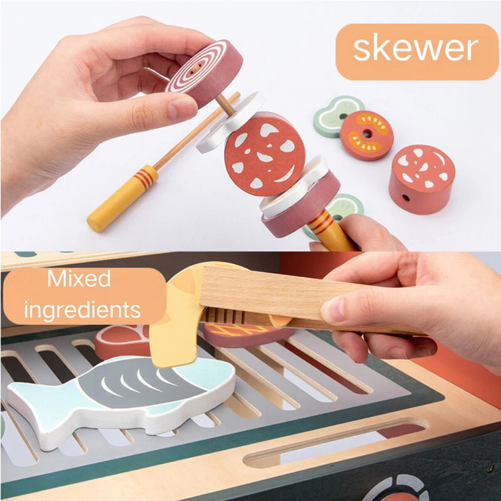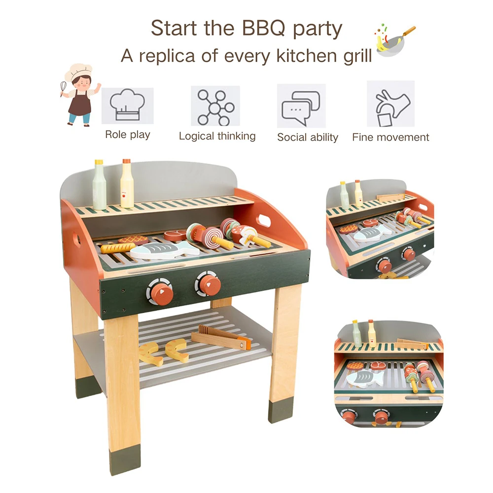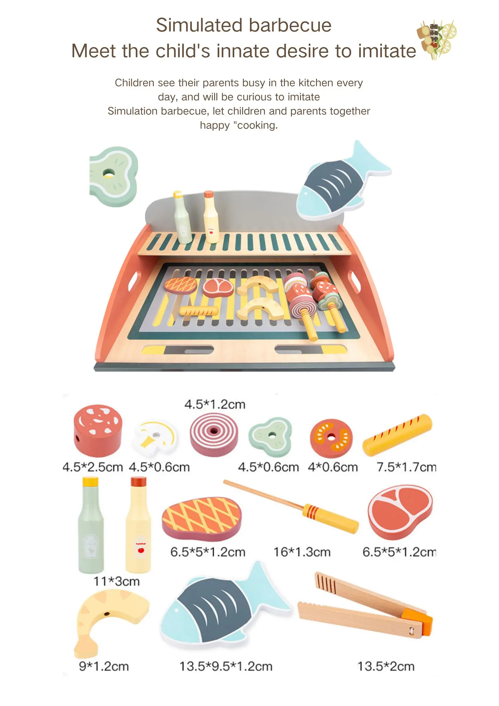 Children’s Barbecue Table Wooden Kitchen Toys Play House Simulation BBQ Grill Children’s Educational Toys Children’s Gift