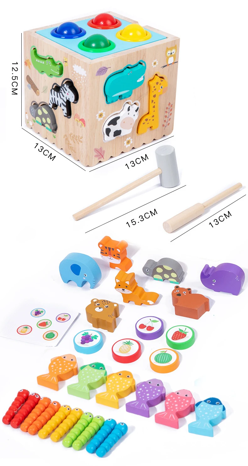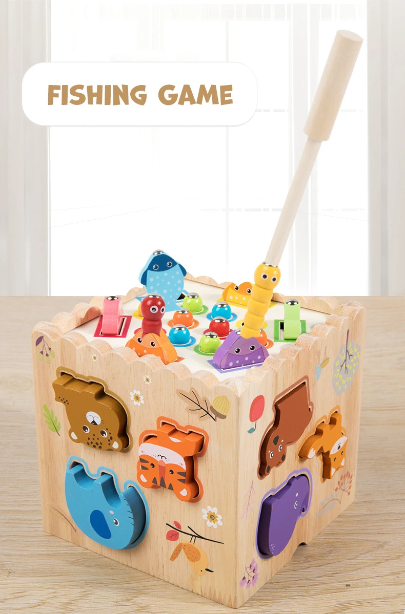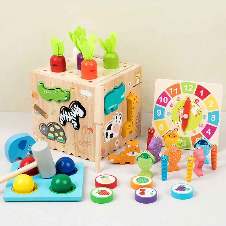 Children’s Wooden Shape Group Puzzle Matching Blocks 8-in-1 Multi-functional Intelligence Box Assembly Toy