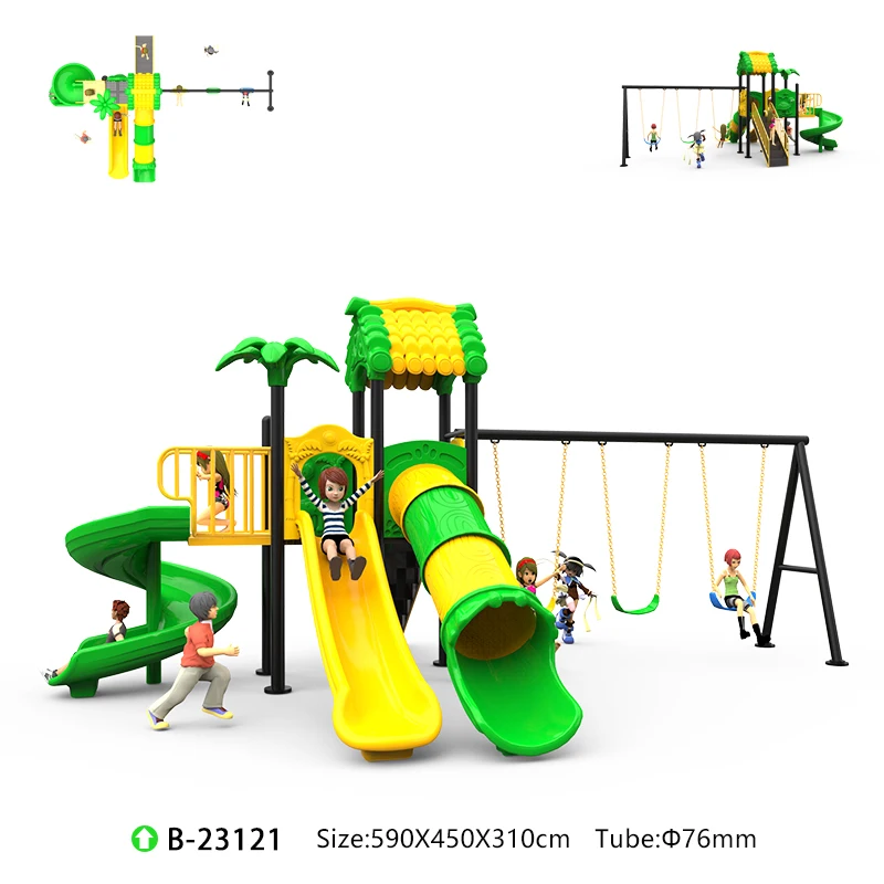 1.Product Features: The Children Outdoor Playground Equipment is a combination of a slide and swing, offering a versatile play experience for kids.