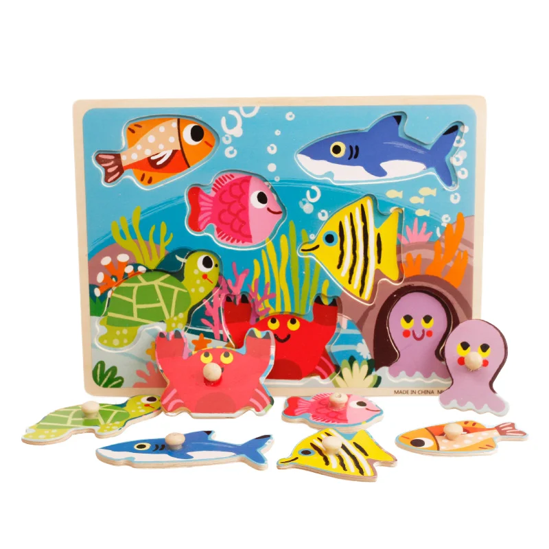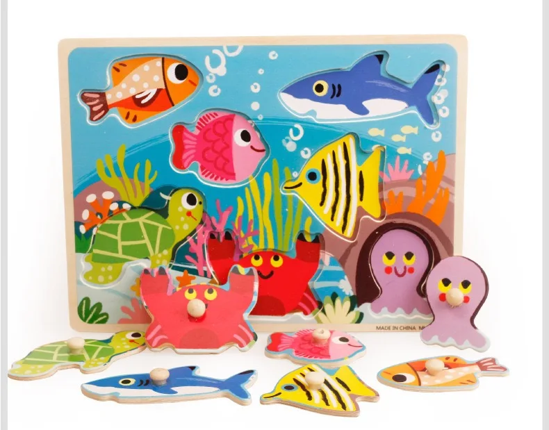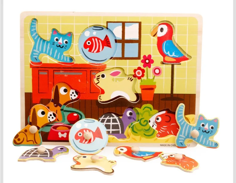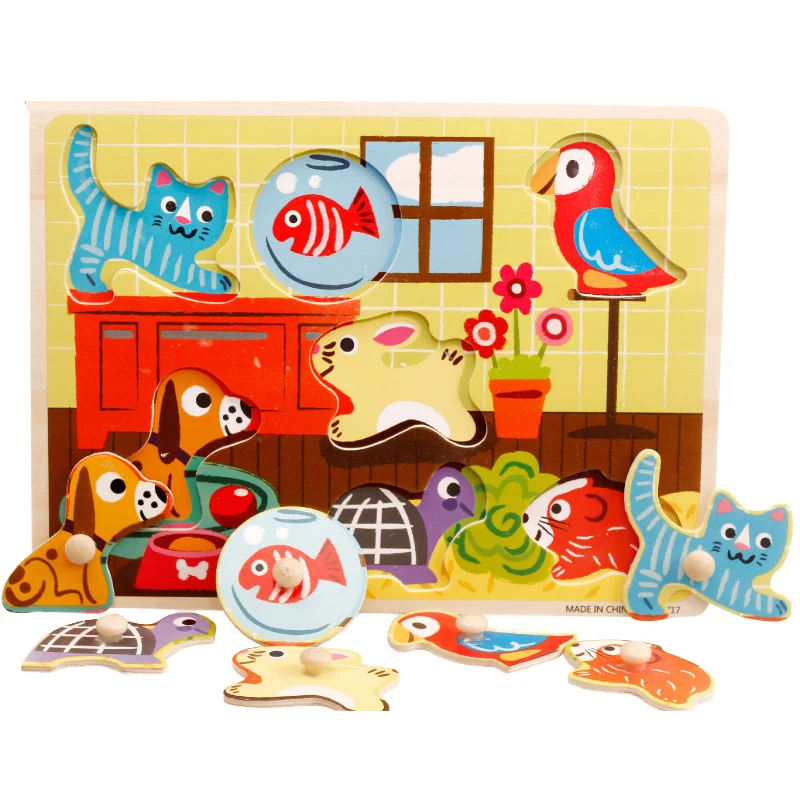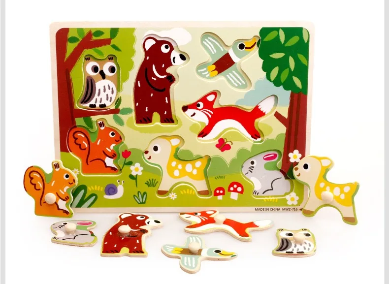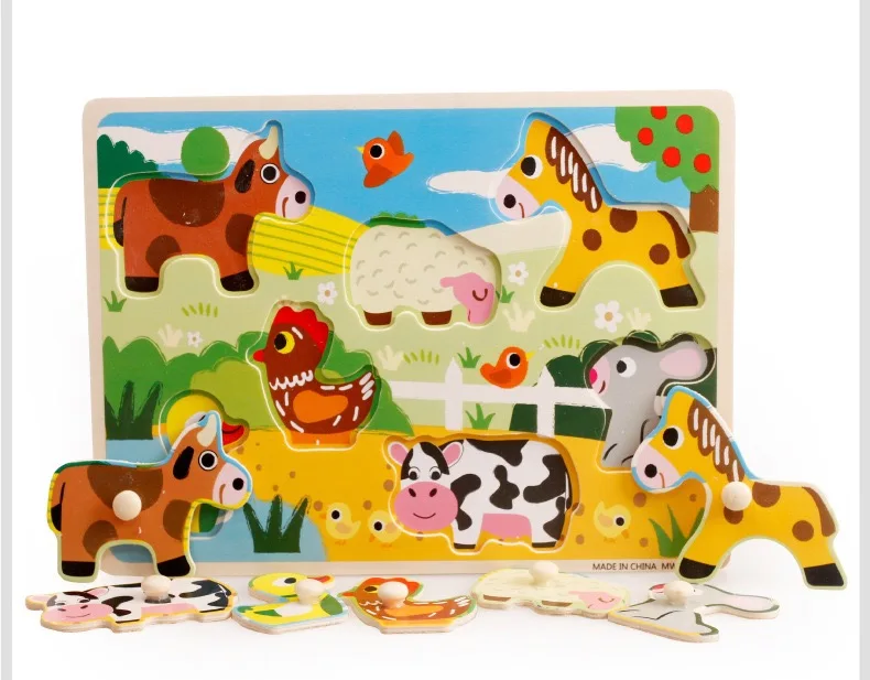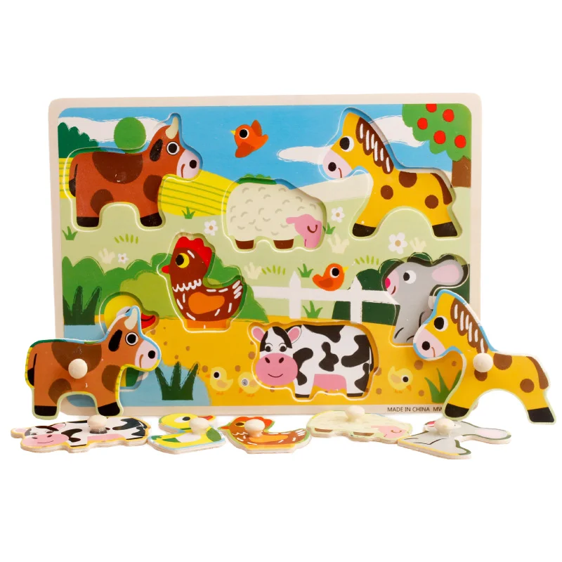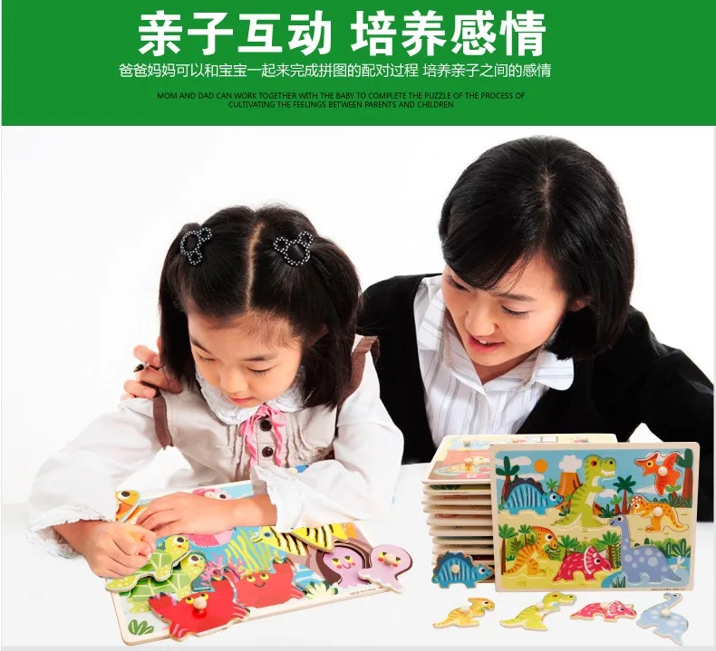 Custom Wooden 3D Puzzle Jigsaw Toys for Children Cartoon Animal Vehicle Wood Toddler Puzzles