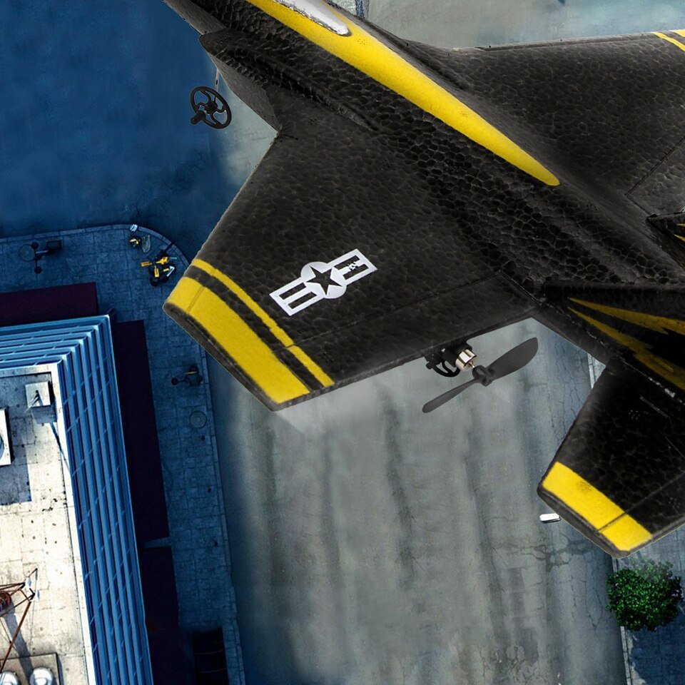 Le package comprend un avion RC, une batterie Lipo intégrée, un contrôleur à distance, un chargeur USB et un manuel d’utilisation en anglais.