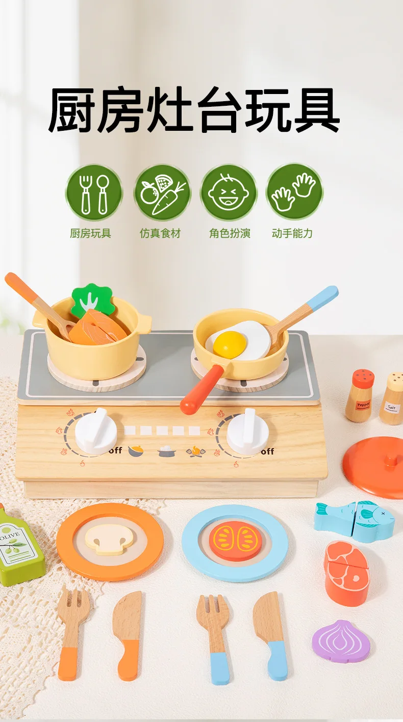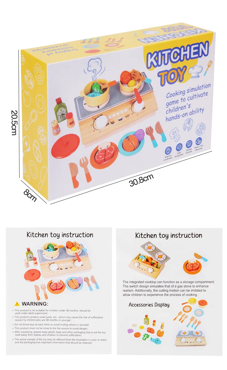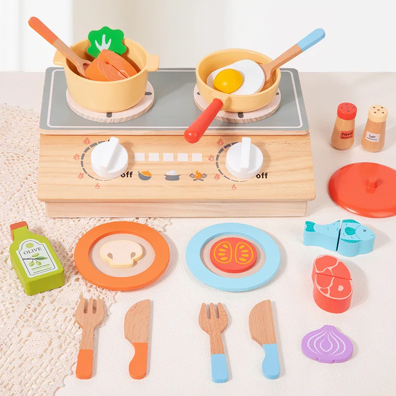 Early Educational Pretend Play Kitchen Utensils Set Interactive Wooden Toys for Parent-Child for Children’s Play and Learning