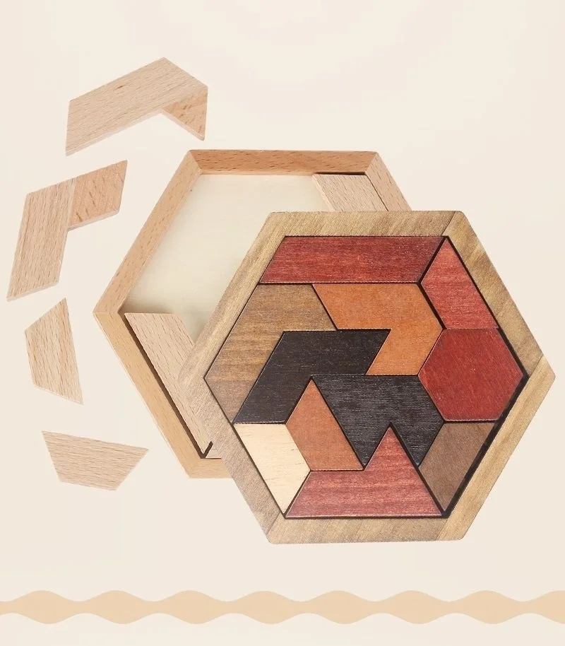 Educational Puzzle Irregular-shaped Building Blocks Intellectual Early Wooden Intellectual Geometric Hexagonal Puzzle Boards