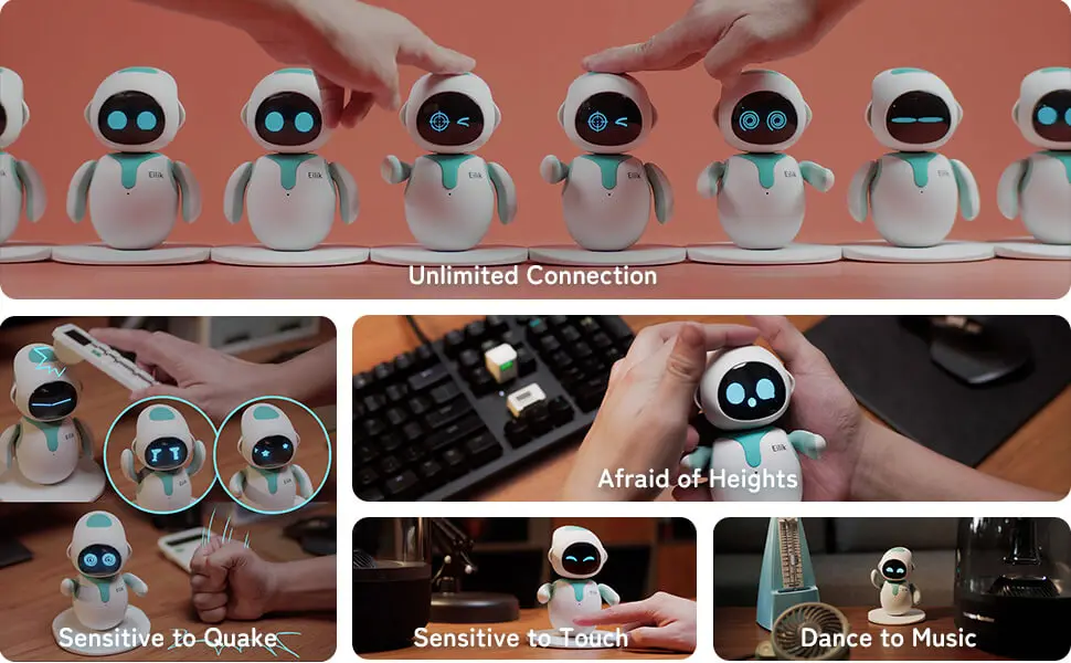 - CONSTANTLY UPGRADING AND ADAPTING – With frequent firmware updates and new interactive content added, Eilik will constantly learn more emotions, functions, and games, it will keep him entertained all the time!