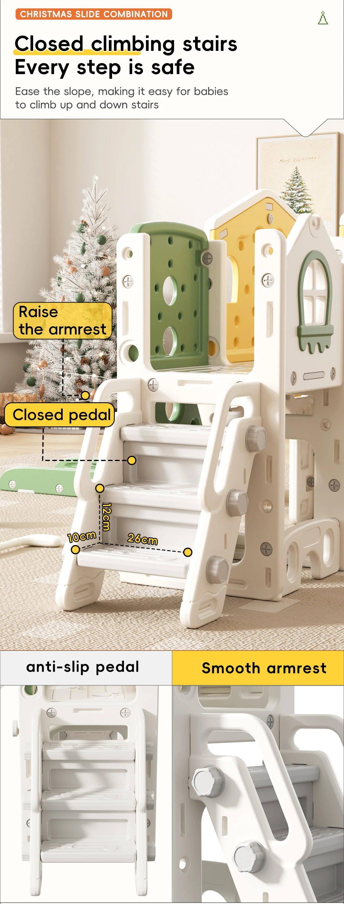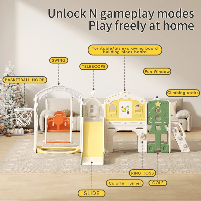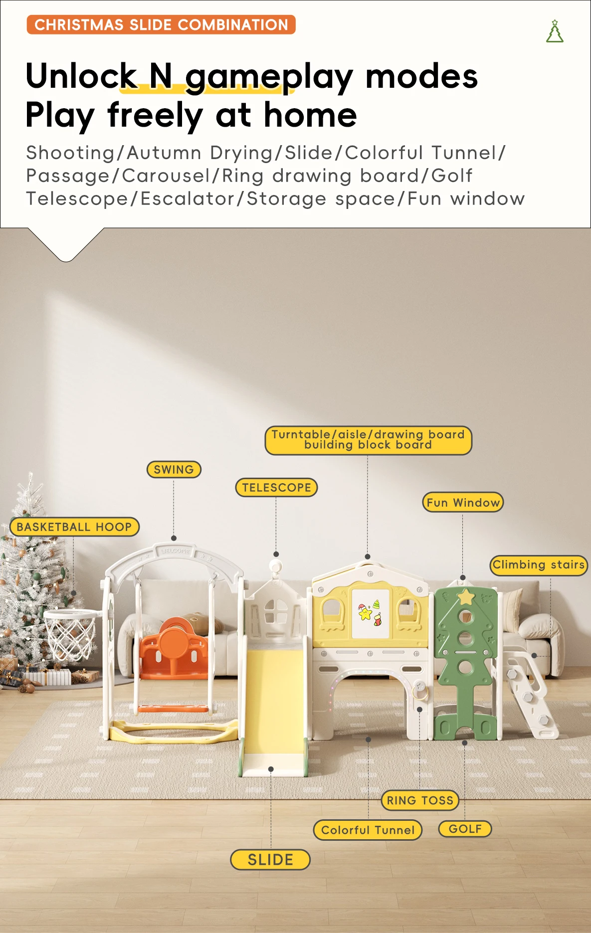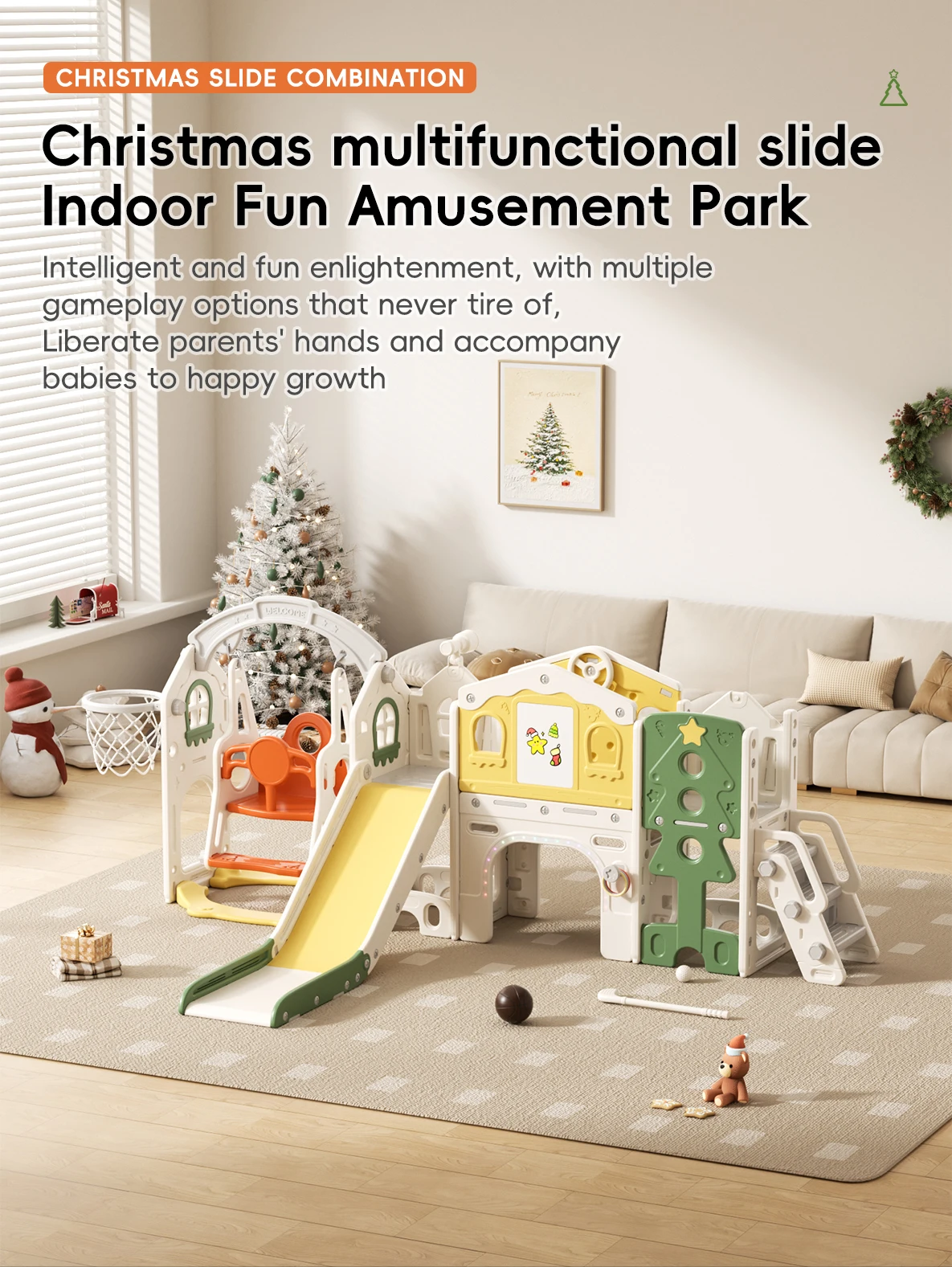Feelkids Christmas House Slide Baby Toys Play House Playroom Children’s Playground Indoor Equipment Plastic Swing and Slides Set