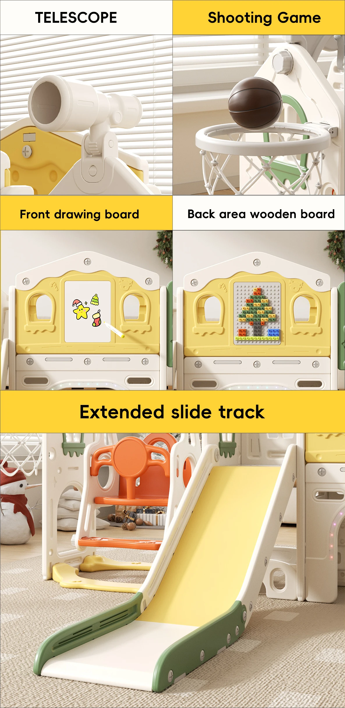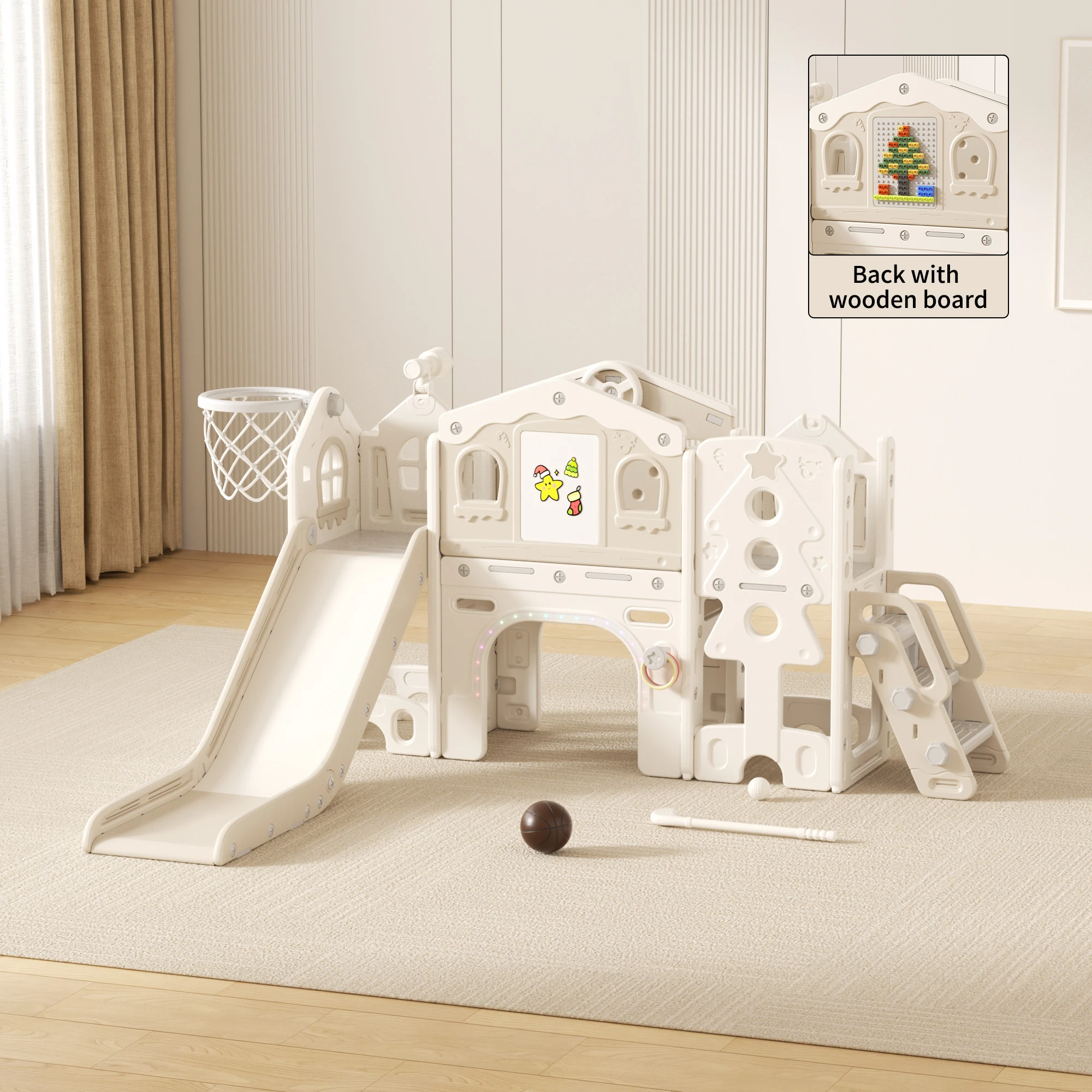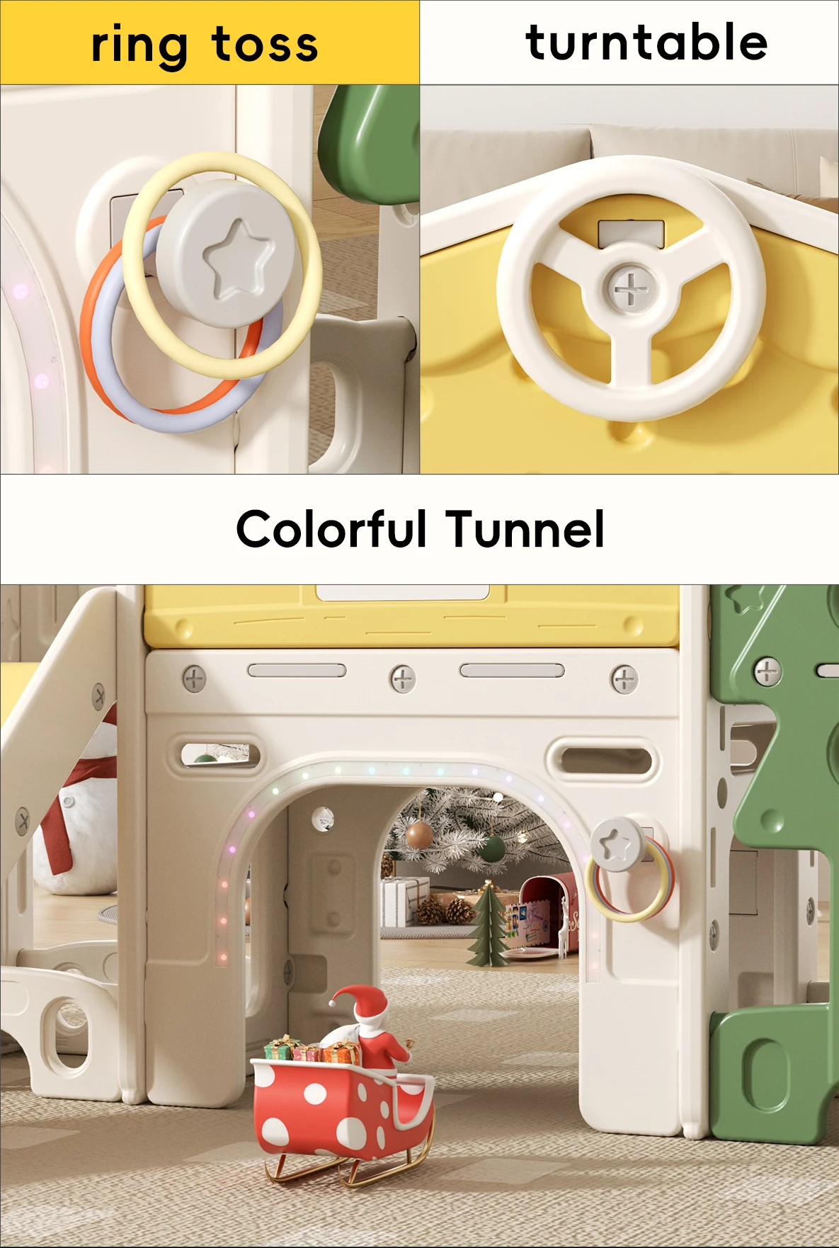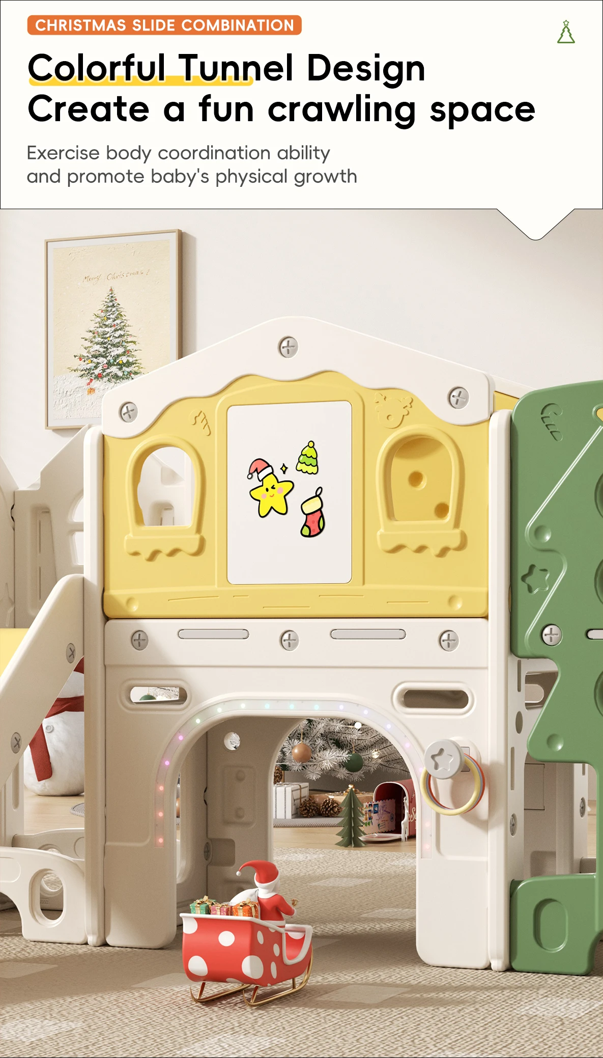 Feelkids Christmas House Slide Baby Toys Play House Playroom Children’s Playground Indoor Equipment Plastic Swing and Slides Set