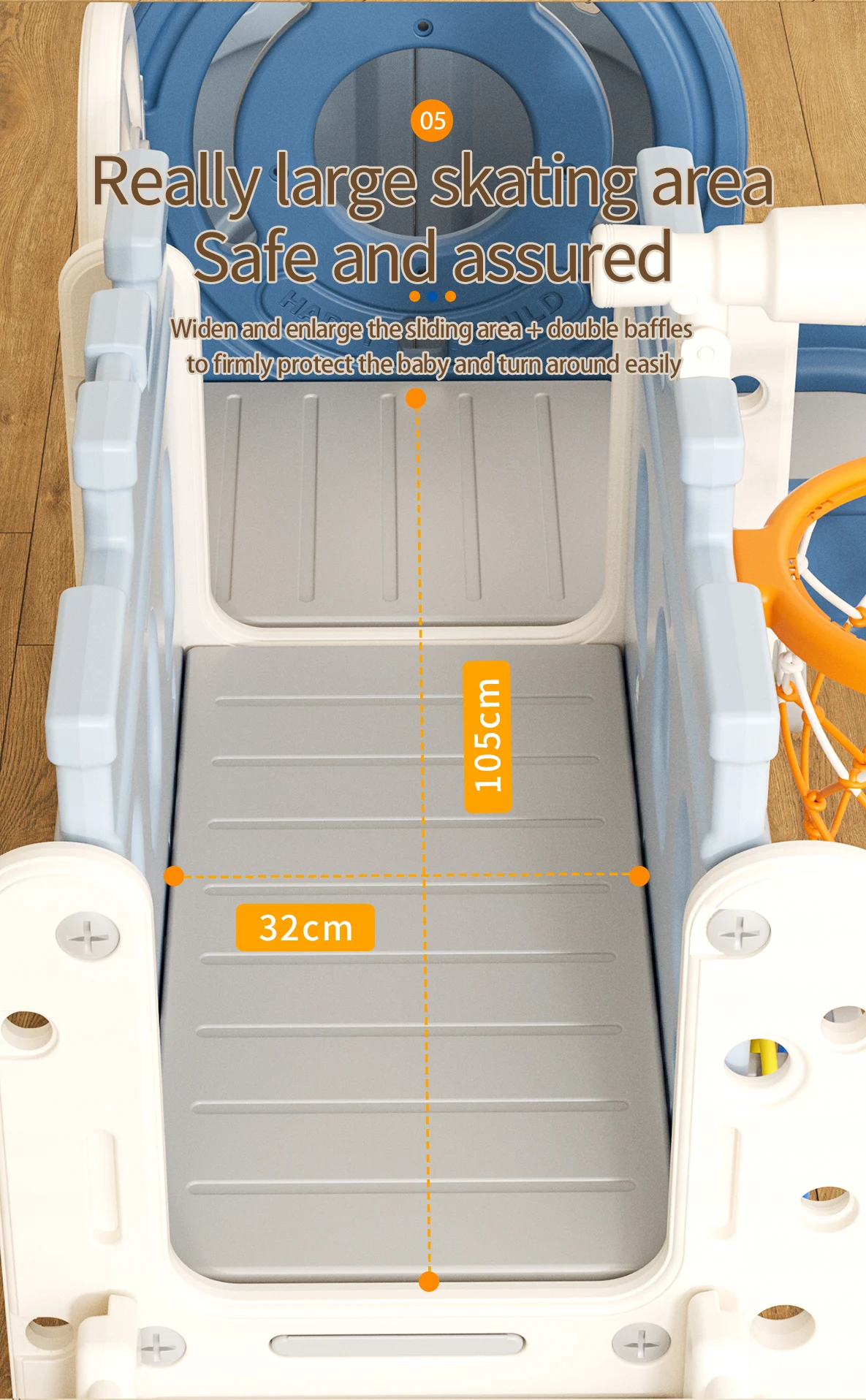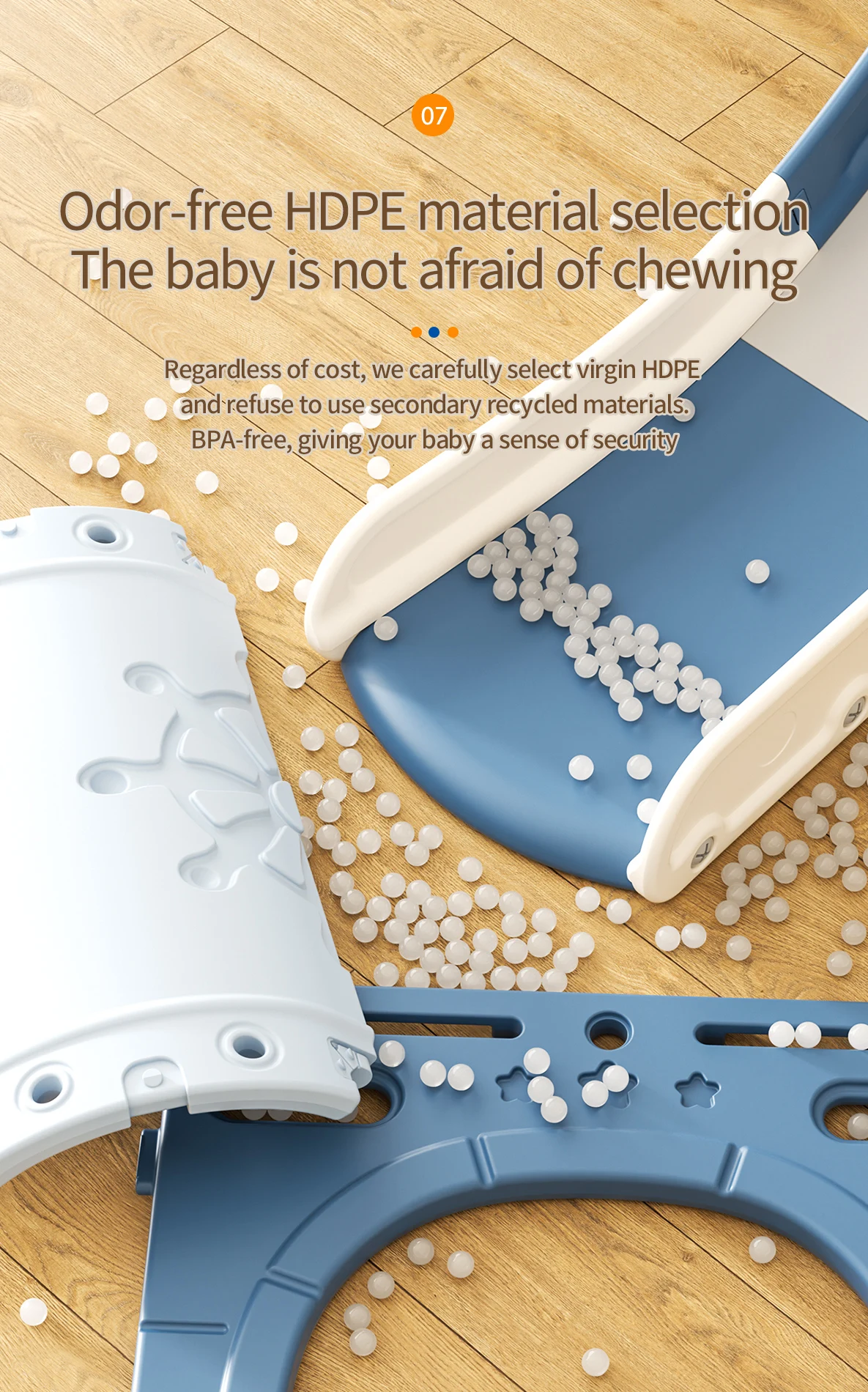 All our designs and products are strictly inspected according to the safety standards to make sure all the parts of the toys will cause no harm to the kids. All the metal parts are smooth and the plastic parts are no-toxic, anti-ultraviolet property, conforming to the standard of FOOD class.