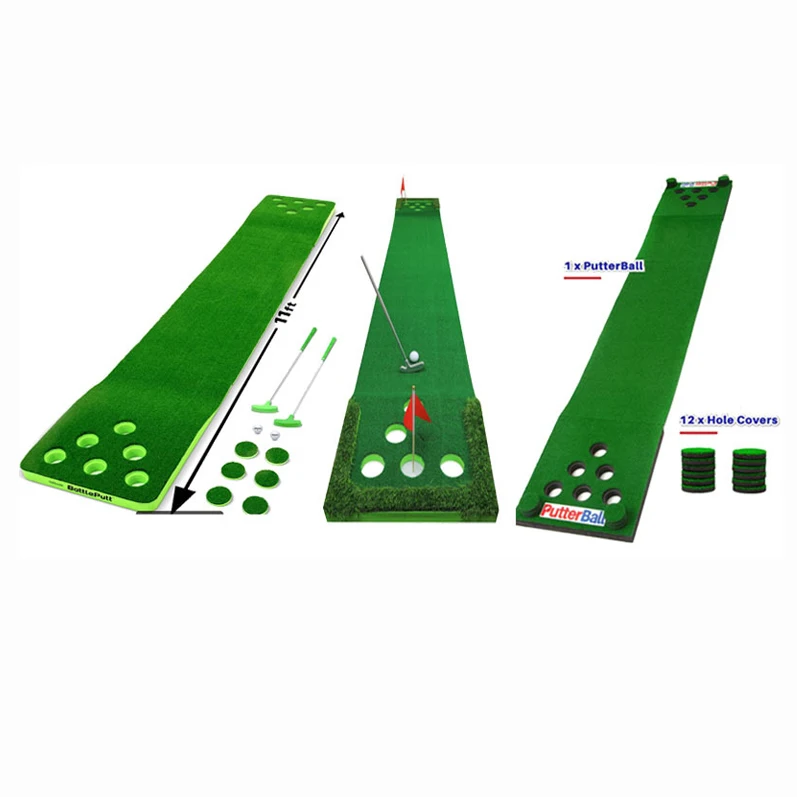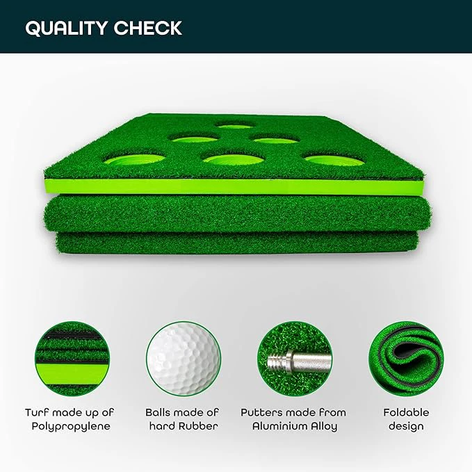 Golf Mat Game Set Short Game Trainer for Office Parties and Backyards with Covers Indoor/outdoor 12 Hole Green Putting Green