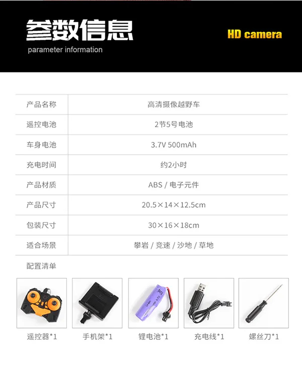 | Color | C023as [hd camera climbing car-alloy-black]], C023bs [hd camera climbing car-plastic-orange]] |