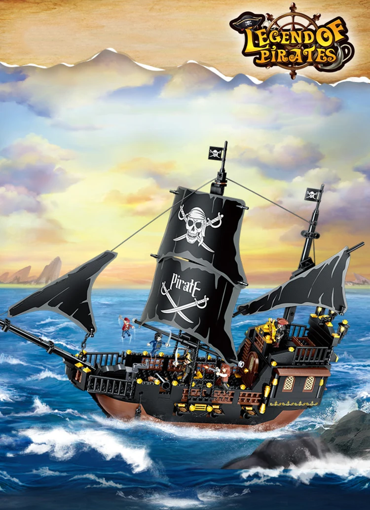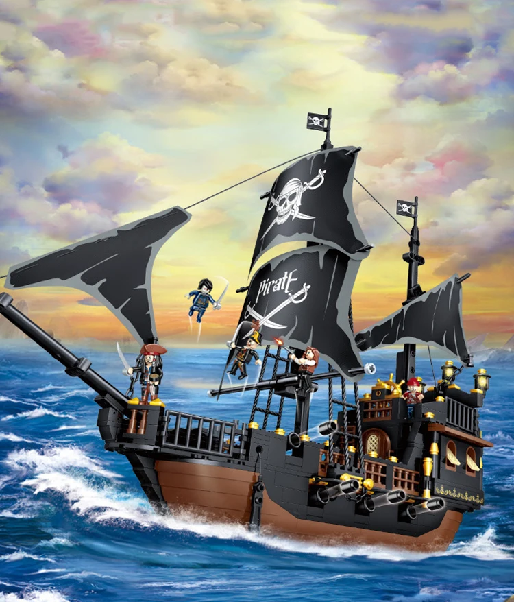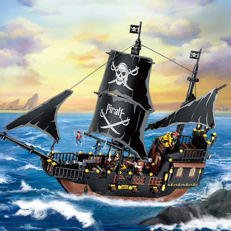 Hot Sale DIY Building Block Toy Pirate Ship Model Montessori Educational Toy for Boys Perfect Birthday Gift