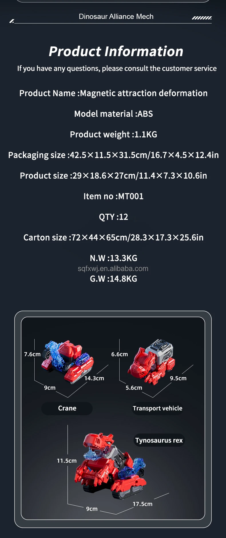 Hot Selling Christmas Gifts for Boys 6-in-1 Transformable Magnetic Attraction Dinosaur Robot Transforming Puzzle Toys for Kids