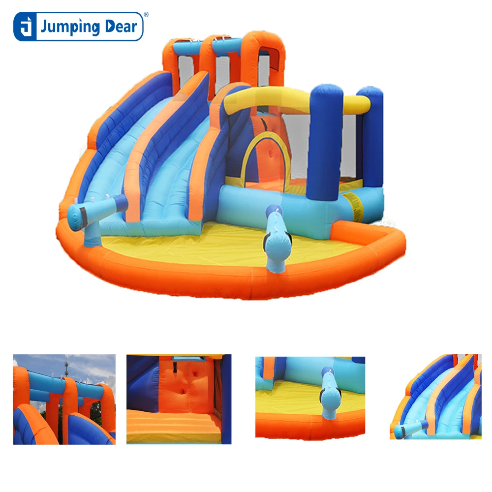 Our inflatable combo can be used more than 1 year. If it is damaged, you can material to repair it. Because it is too long distance to ship goods back, we will send a kit bag for every inflatable products.
