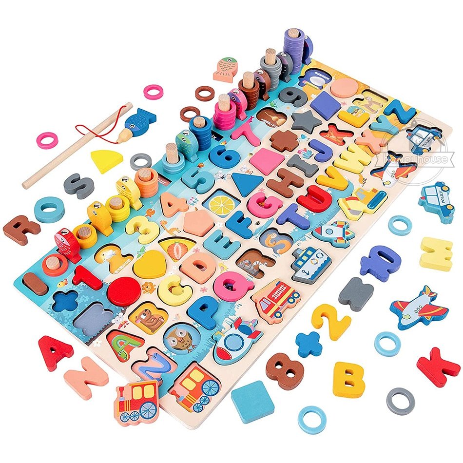 Jeu en bois pour apprendre les mathématiques et la pêche