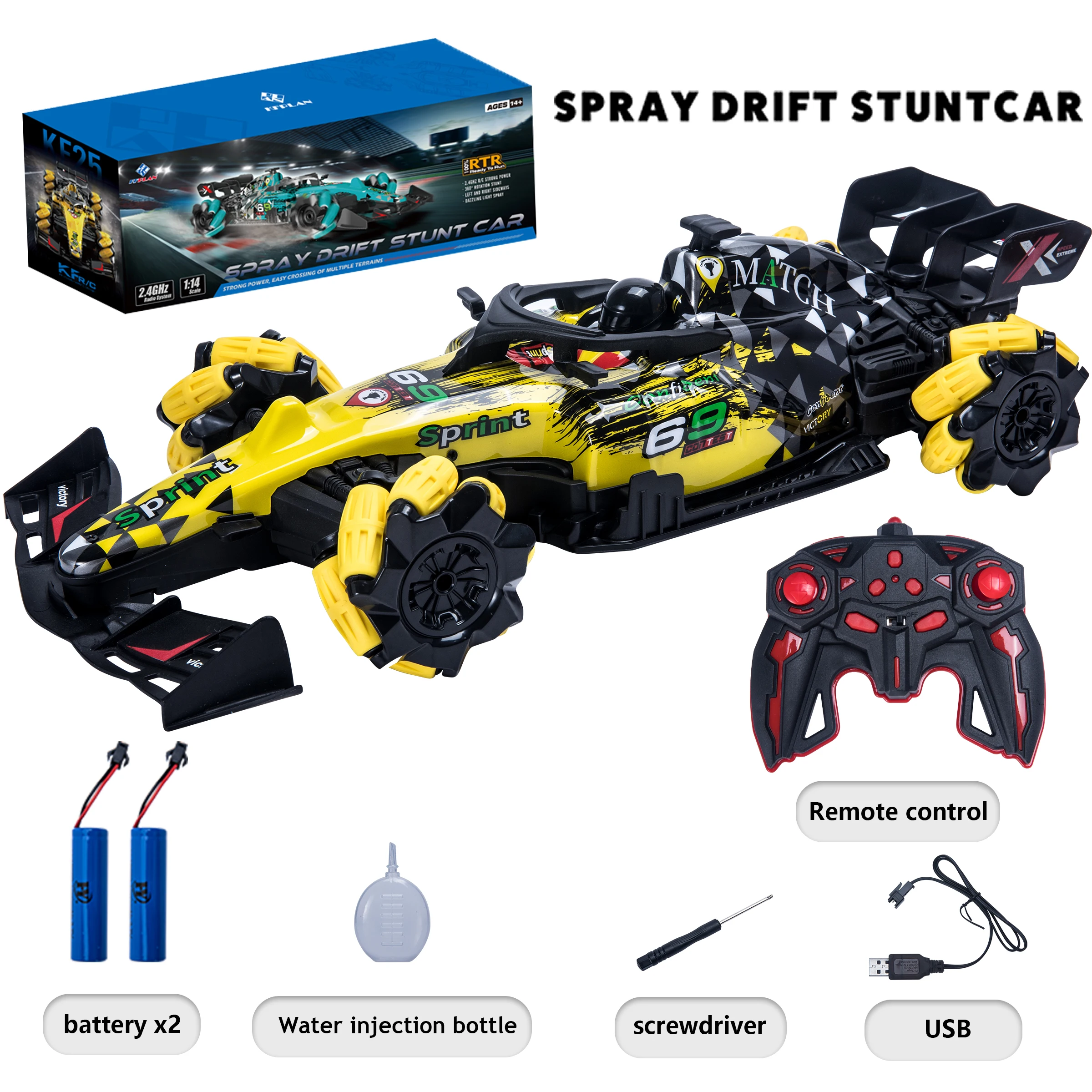 KF25 F1 new rc car 1/14 4WD 2.4G formula car Remote Control Racing High Speed 360 Rotating Car for Kids RC + Watch Control