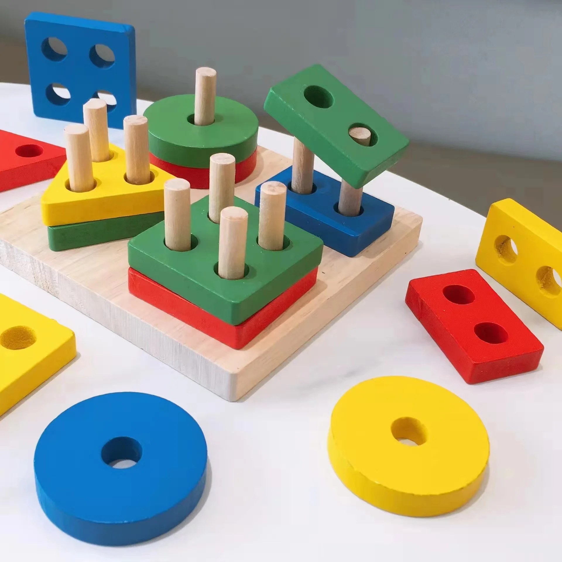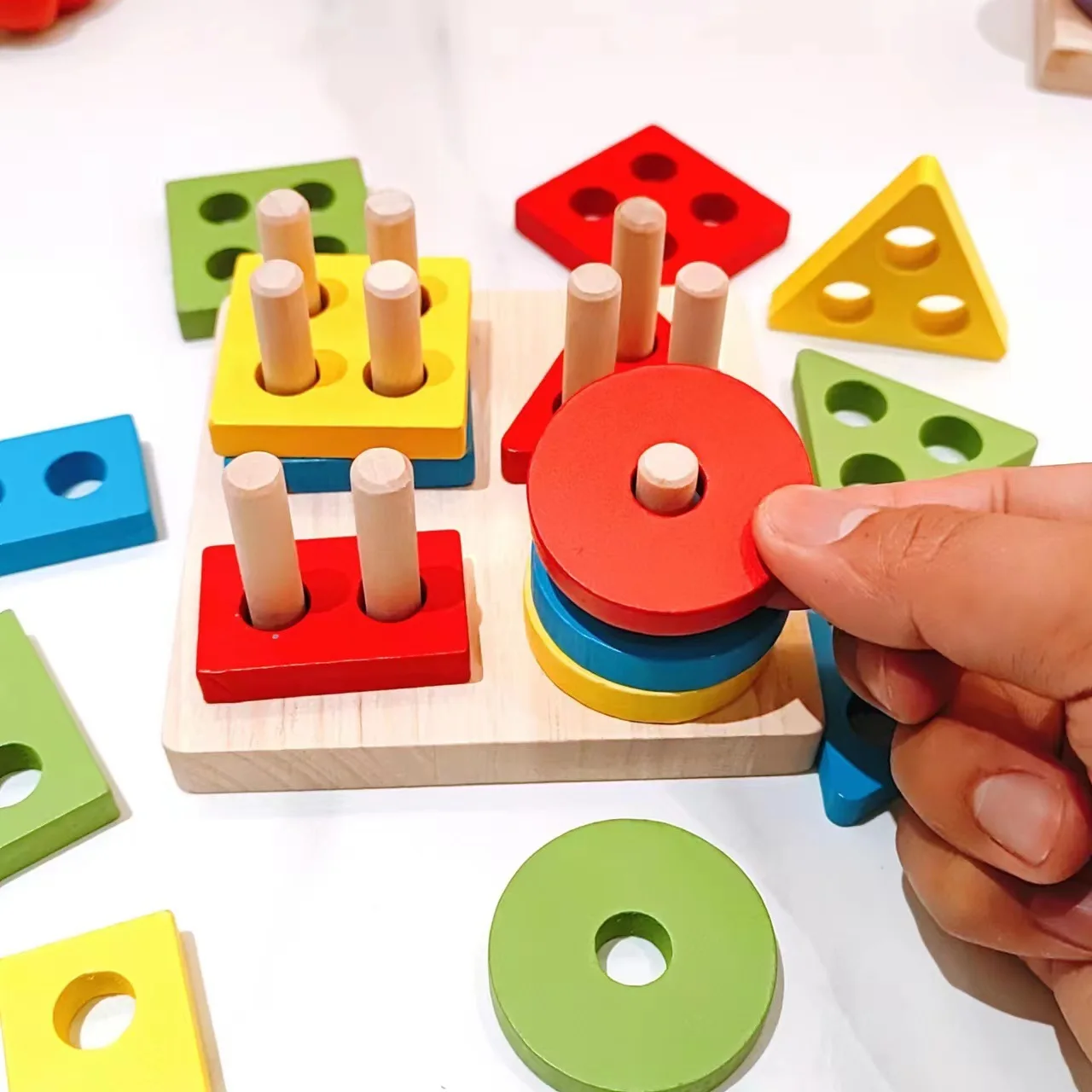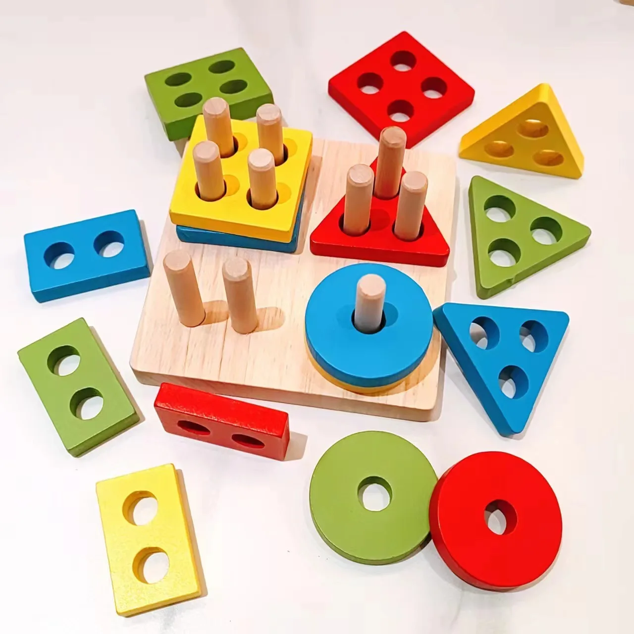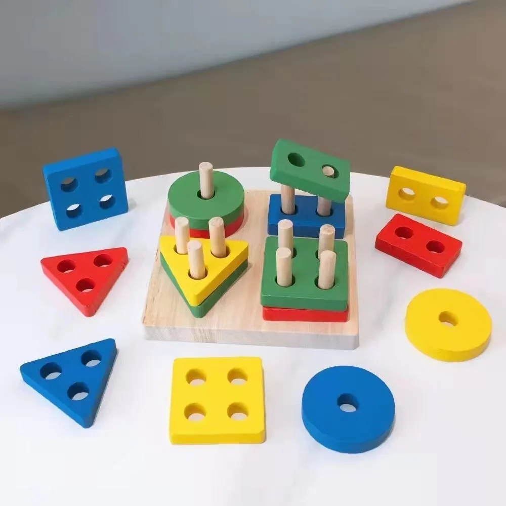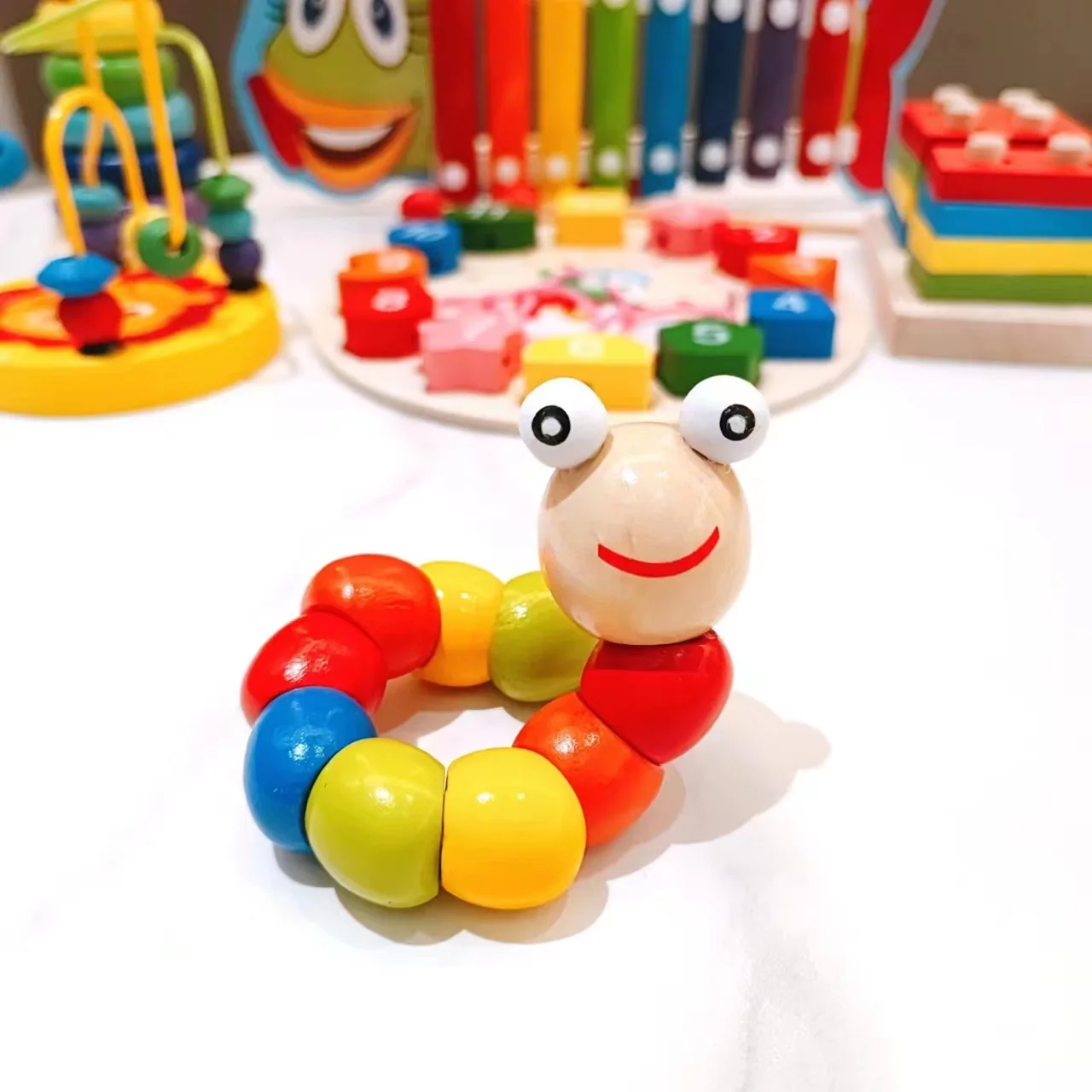 Kids Montessori Cartoon Animal Educational Wooden Beaded Geometry Digital Clock Puzzles Gadgets Matching Clock Toy