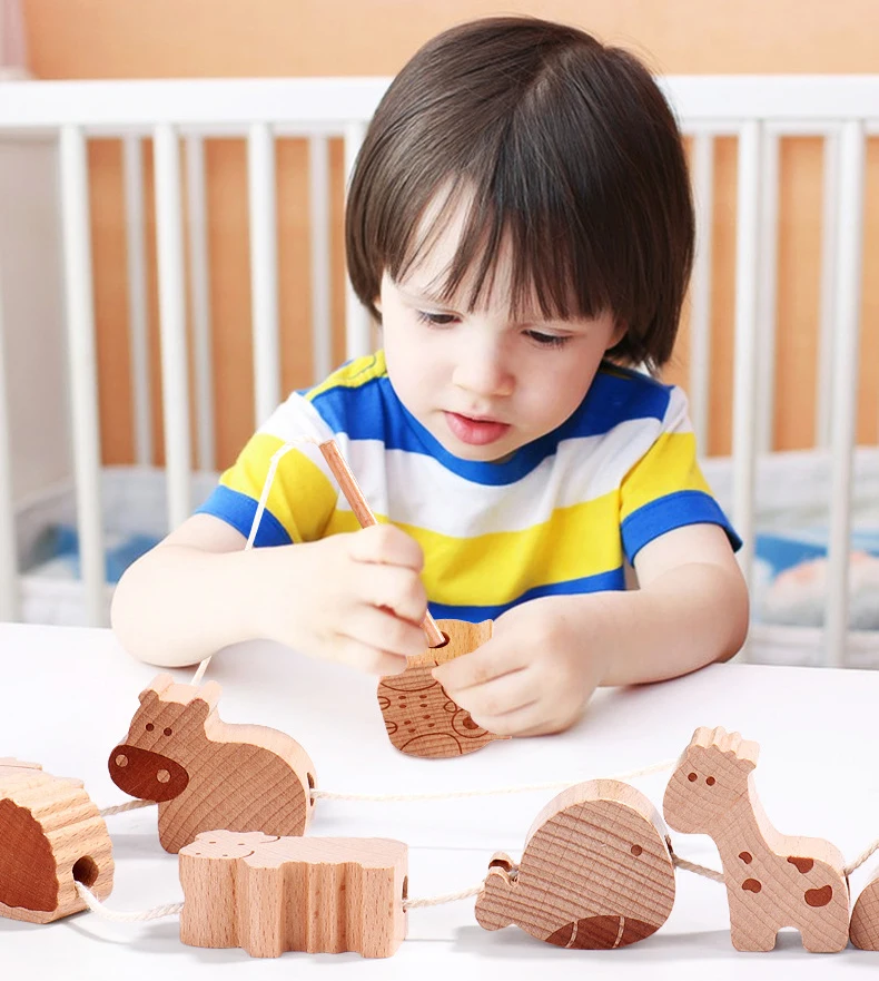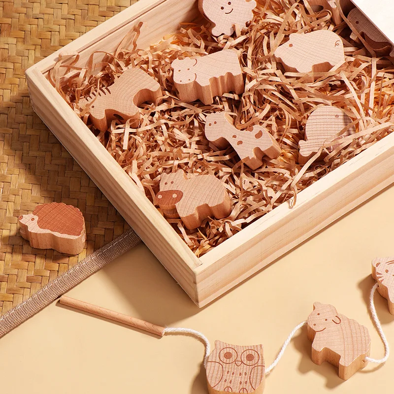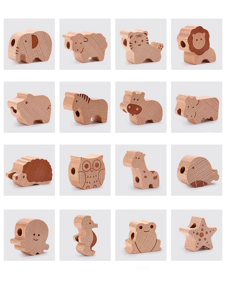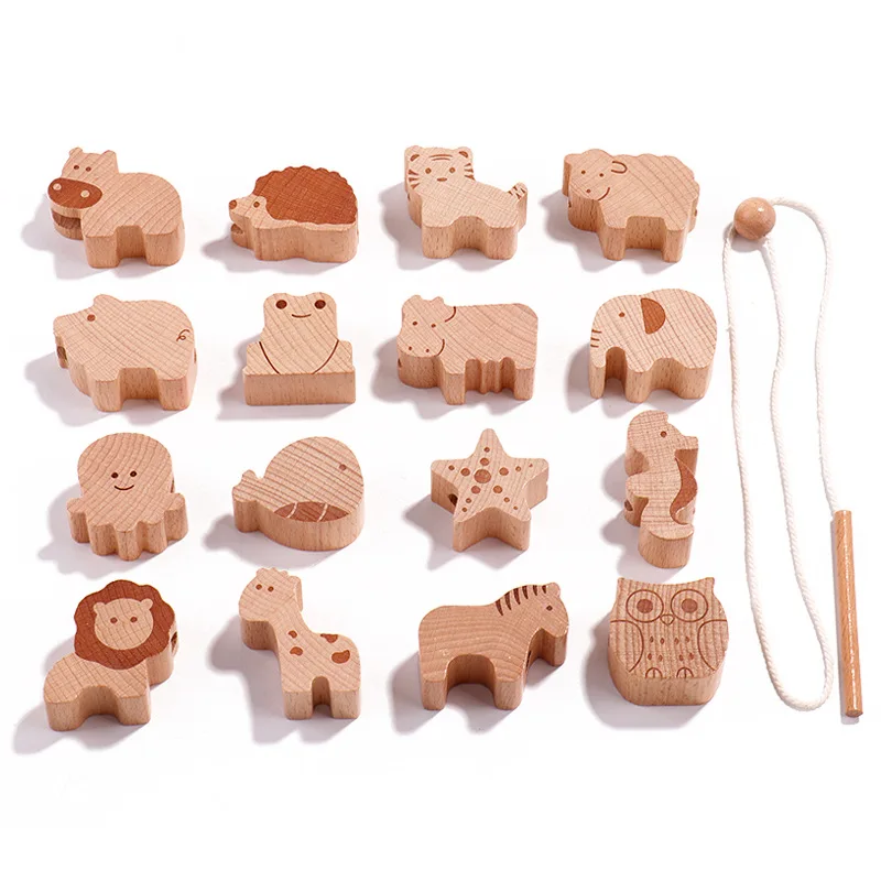 Kids Montessori Wooden Lacing Toy DIY Wooden Beads for Children Cartoon Animals Fruit Letter Digital Beads Threading Toys Gifts