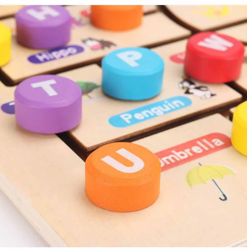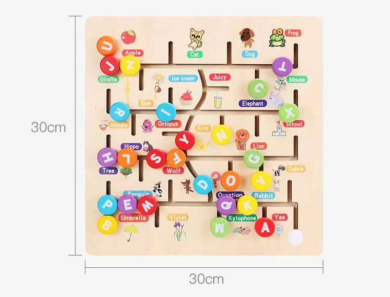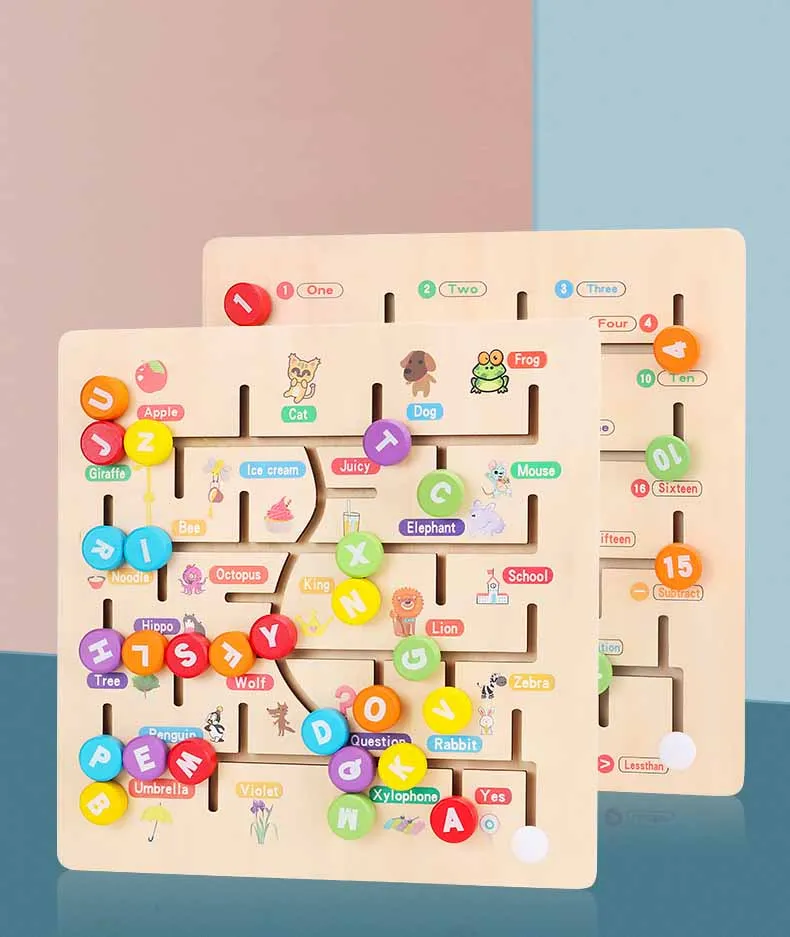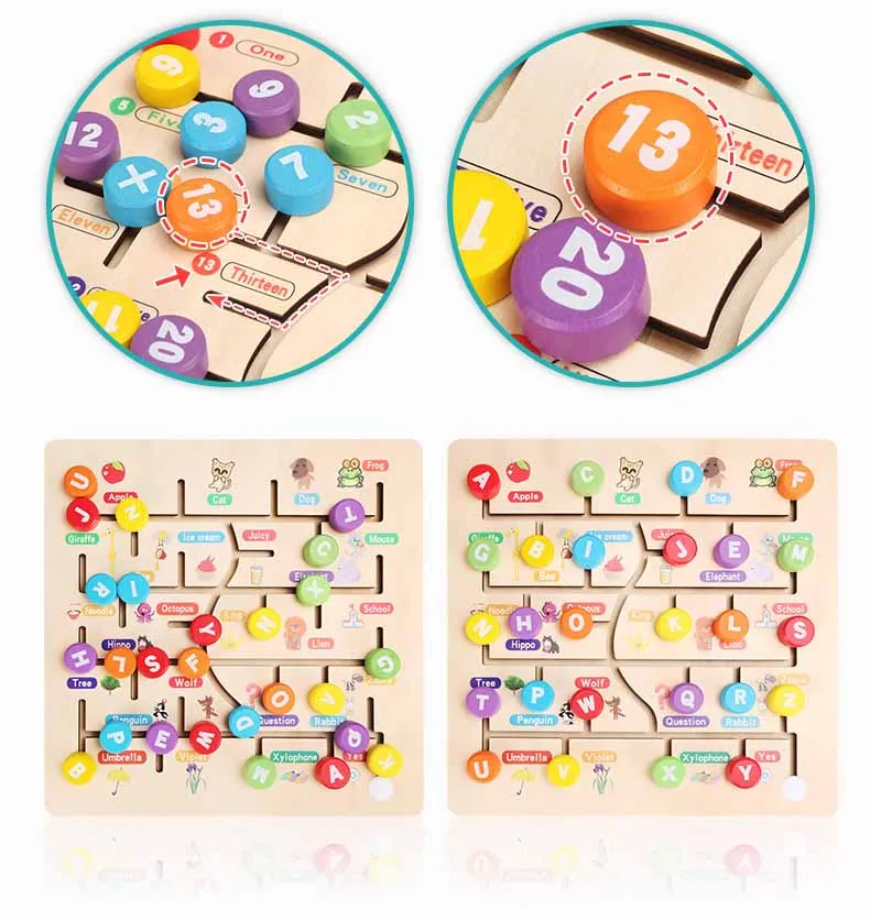 Kids Toys Montessori Wooden Toys Maze Slide Puzzle Jigsaw Board Alphabet Digital Matching Early Educational Toys for Children