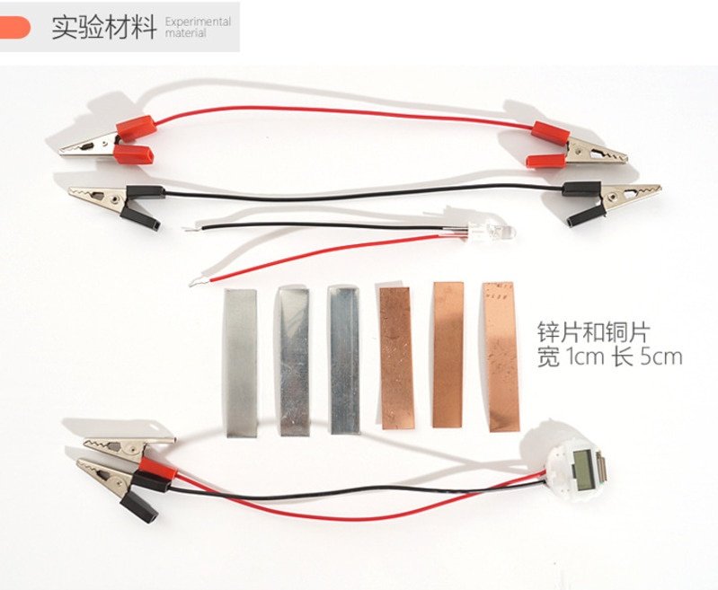 Le kit utilise des fruits pour créer une simple batterie. Les plaques métalliques en cuivre et en zinc, lorsqu’elles sont insérées dans un fruit, génèrent un courant électrique qui peut alimenter des dispositifs comme une horloge.