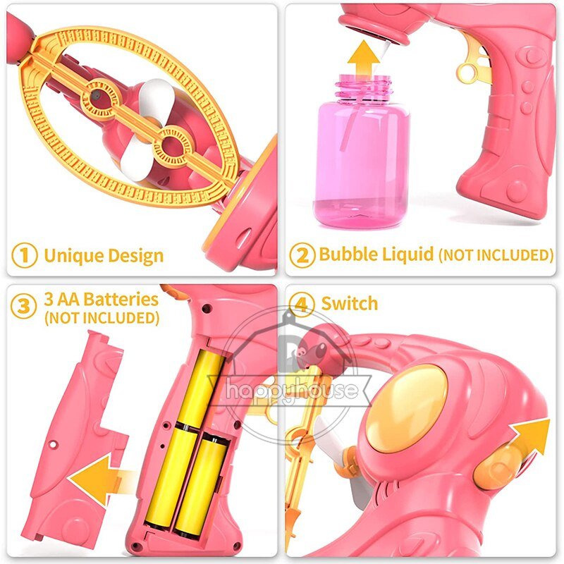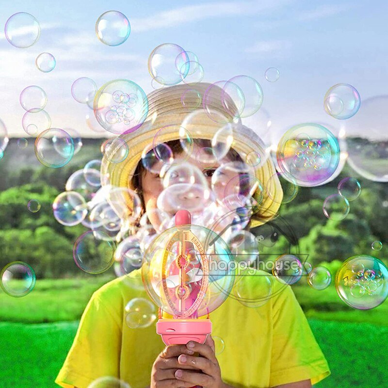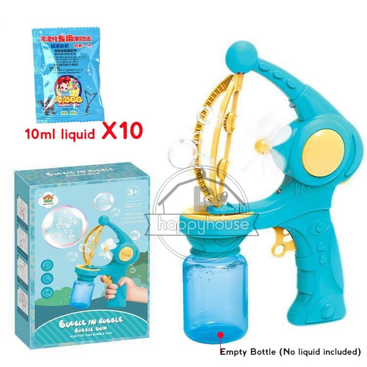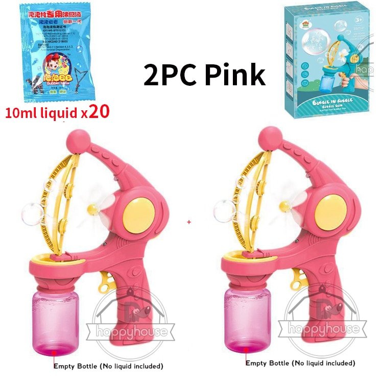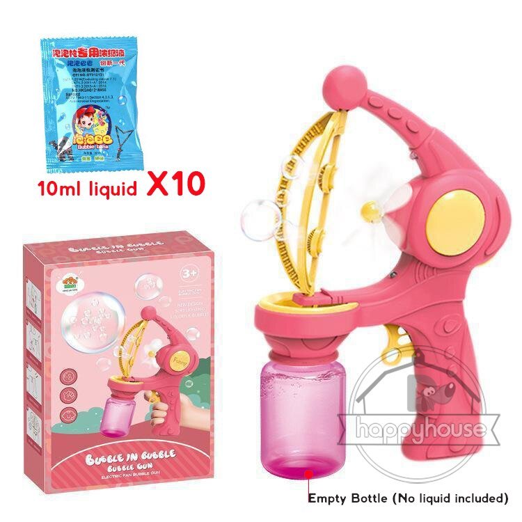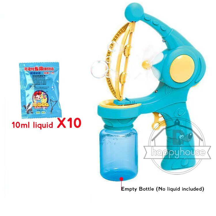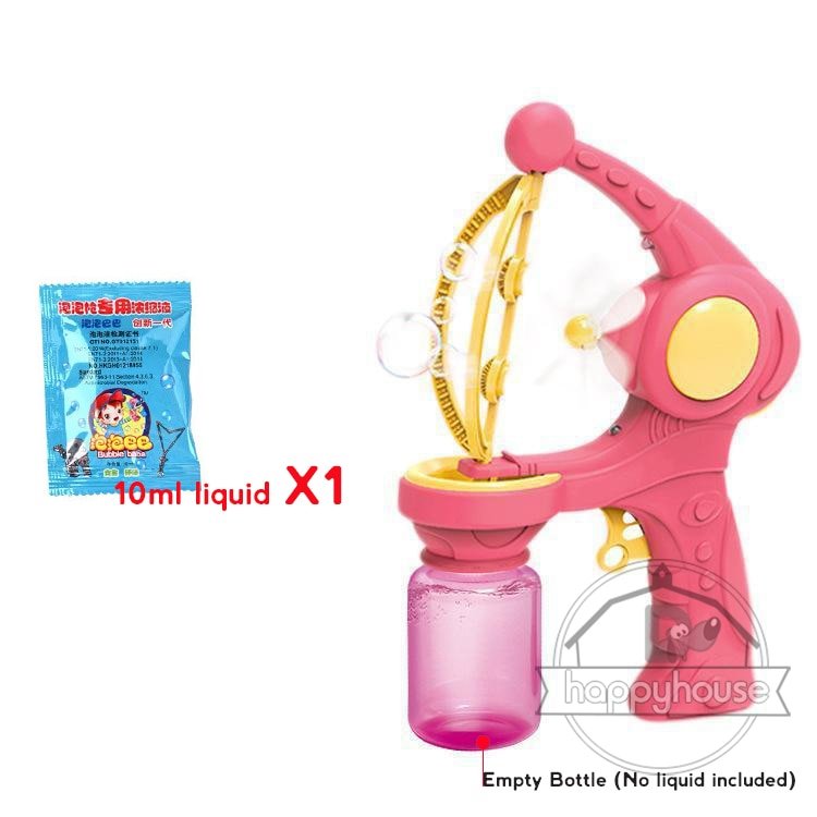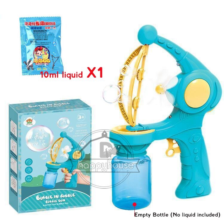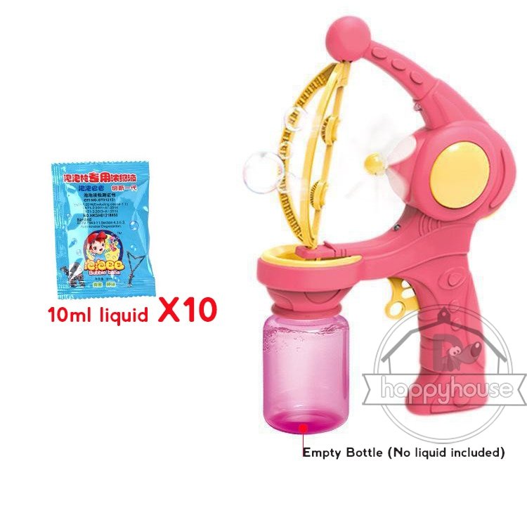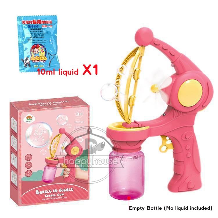 Non, le liquide à bulles n’est pas inclus, mais il peut être acheté séparément dans la plupart des magasins de jouets.