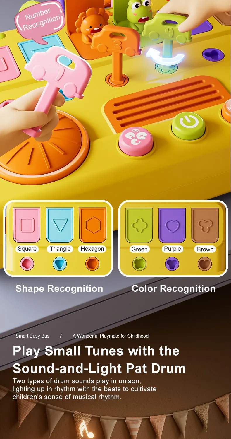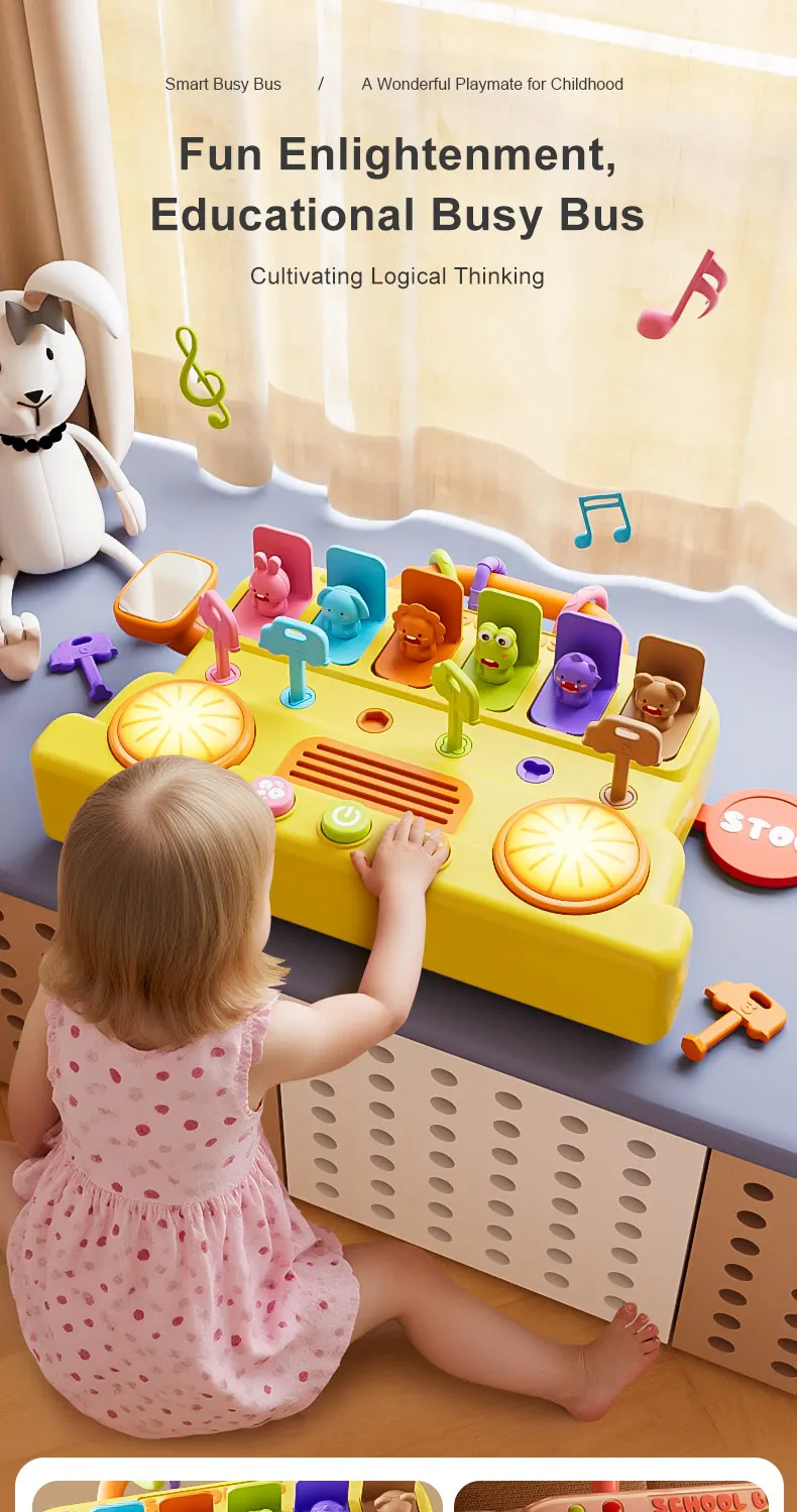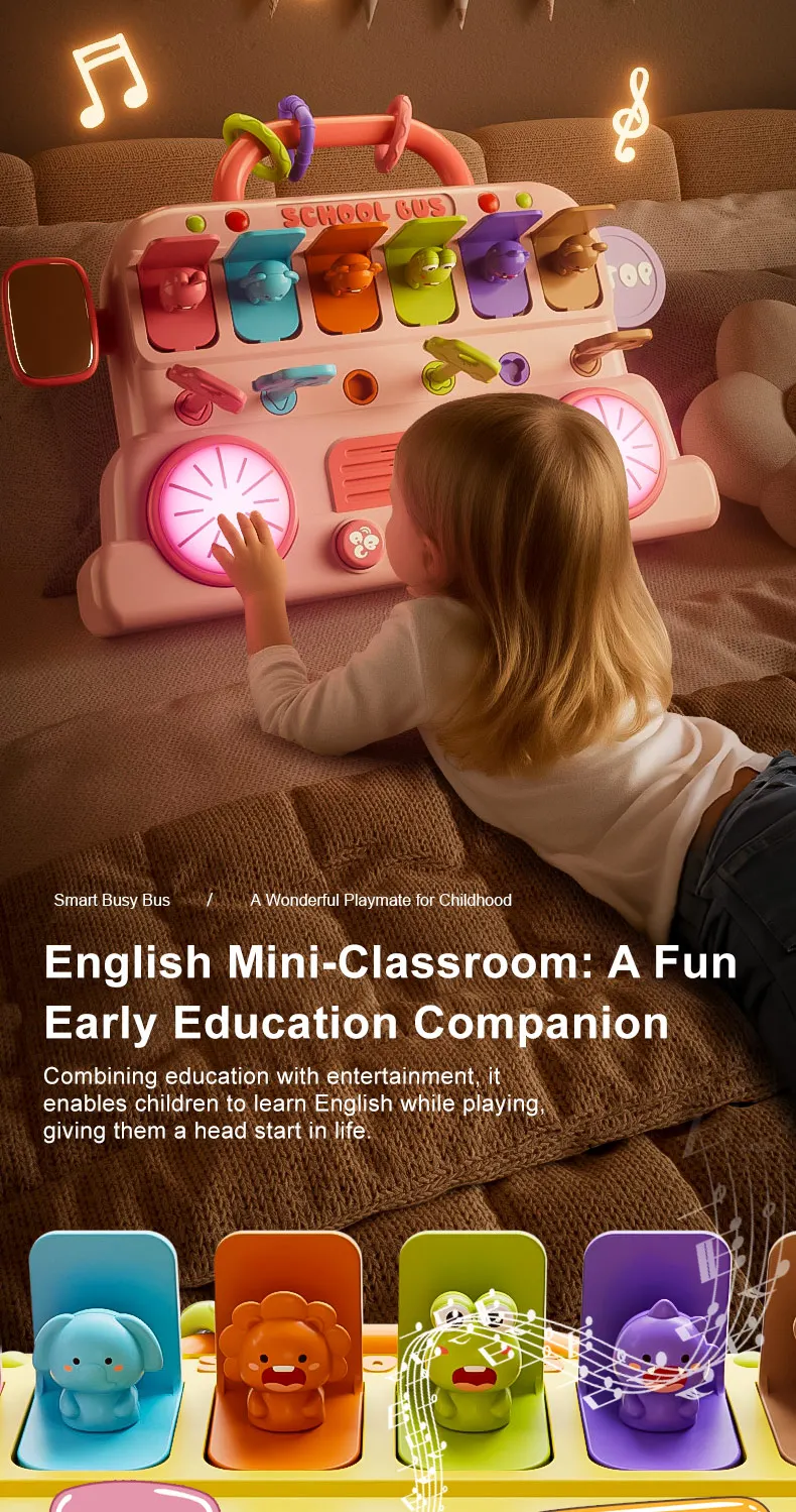 LEZA BABY Children Toys Early Learning Bus Music Drum Toys Montessori Key Pairing for Unlocking Mother Kids Toy Educational Toys