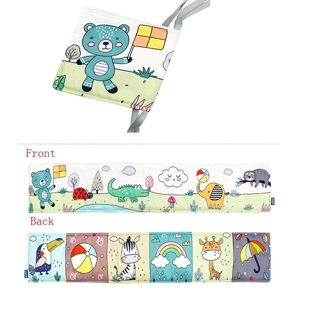 Oui, le livre est équipé de lanières pratiques qui vous permettent de l’accrocher facilement à un lit, une poussette ou un siège-auto.
