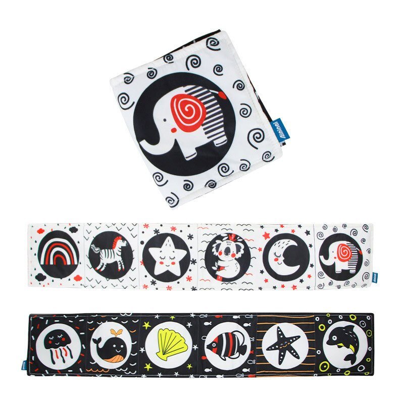 Offrez à votre bébé une expérience d’éveil unique avec le Livre en Tissu Contraste. Conçu spécialement pour stimuler les sens des tout-petits, ce livre en tissu est parfait pour les premiers mois de vie. Ses motifs en noir et blanc captent l’attention des bébés et favorisent le développement de leur vision. Avec ses textures douces et ses éléments interactifs, ce livre devient rapidement un compagnon de jeu et d’apprentissage indispensable.