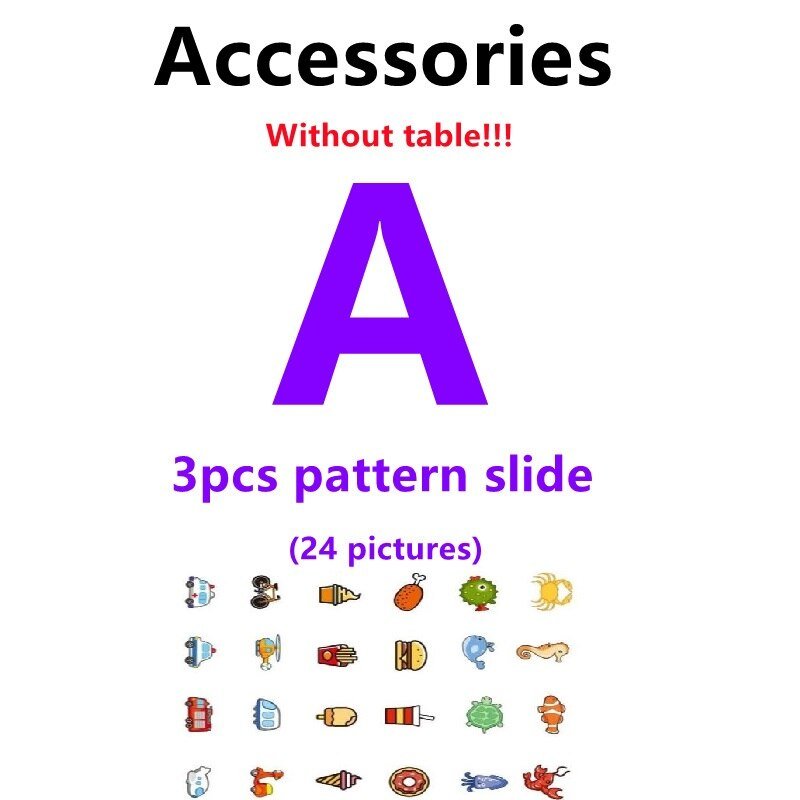 Le projecteur est livré avec 3 diapositives contenant chacune 8 motifs différents, offrant un total de 24 motifs variés qui peuvent être dessinés.