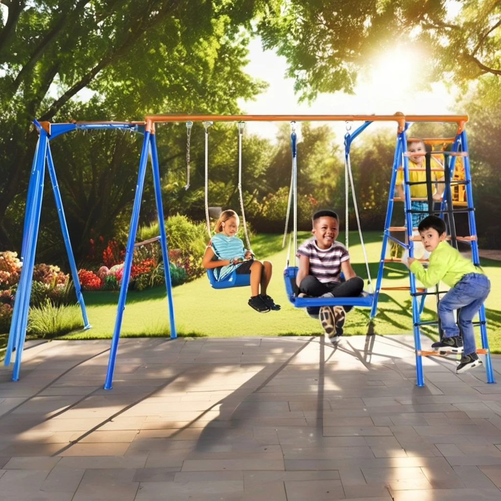 * Amusement Park in Backyard – This multifunctional swing set can be used by several children to play at the same time, which is equivalent to building a mini amusement park in your backyard. Children can climb up and down here, swing high, and shoot a basket. You can let your children entertain their little friends here and let them enjoy an unforgettable afternoon.