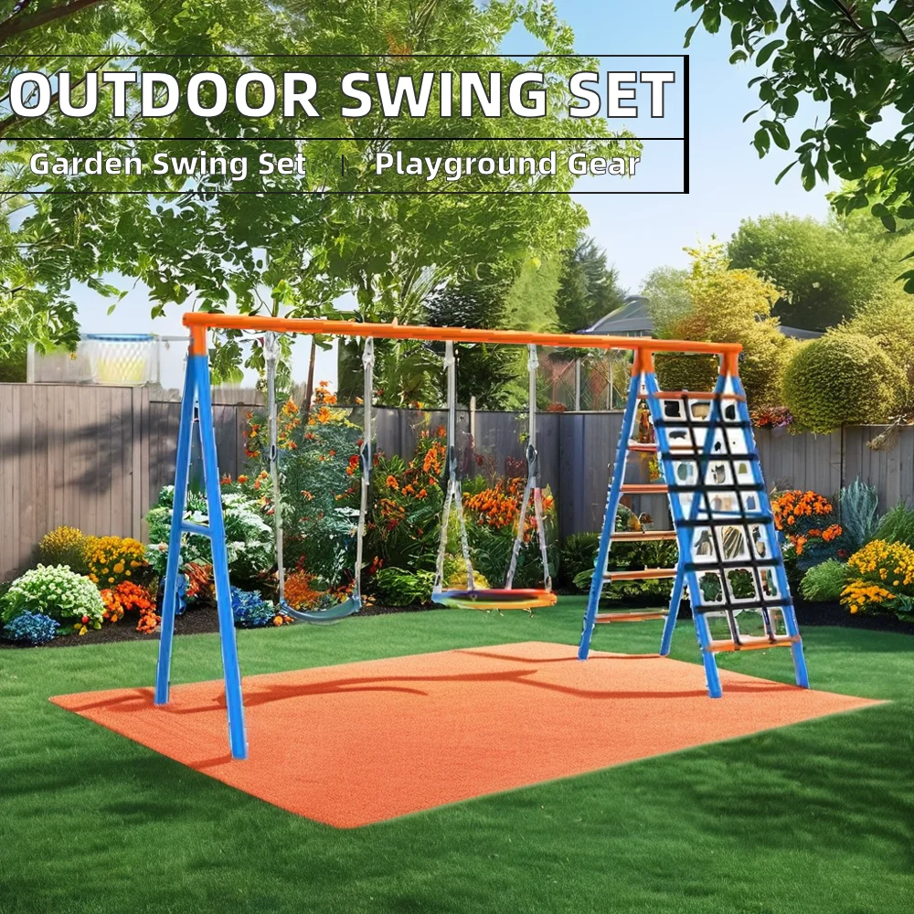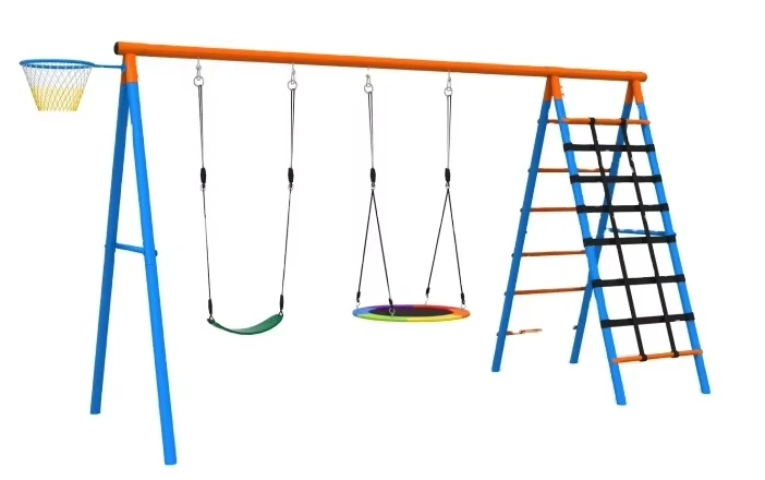 Modern Children’s Outdoor Playground Swing Set with Metal Saucer Belt Basketball Rim Slide-Outdoor Furniture for Home Garden Use