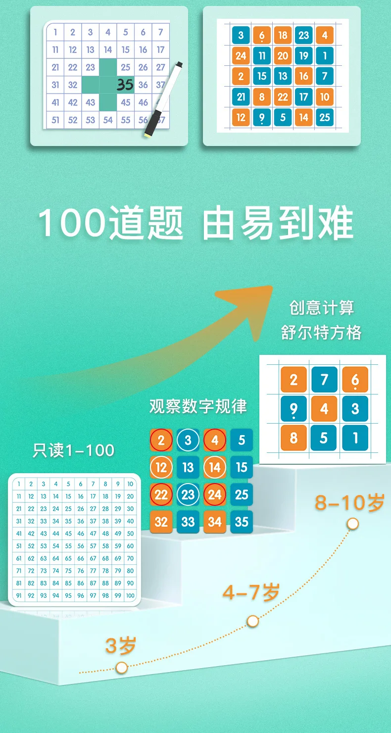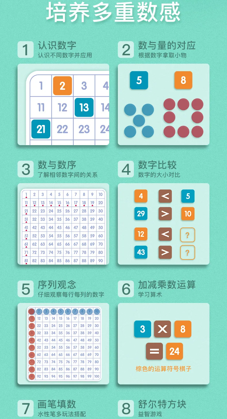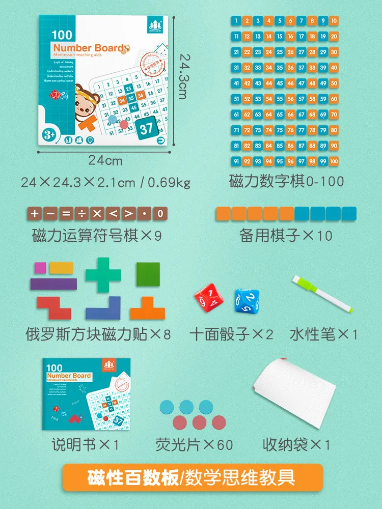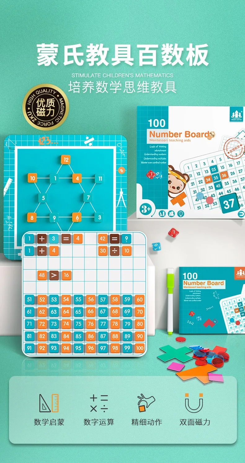 Montessori 1-100 Number Board Educational Toy for Children with Dice Number Game Number Sense Training
