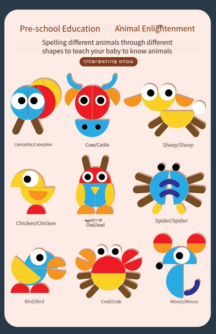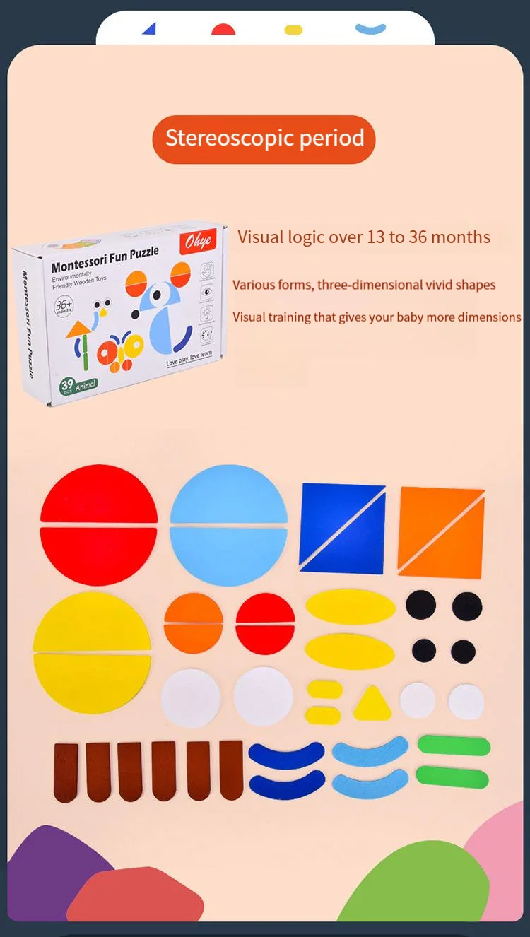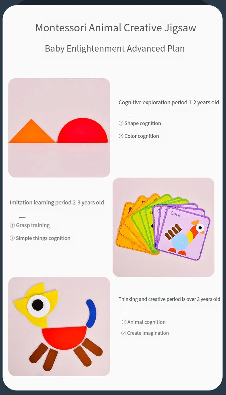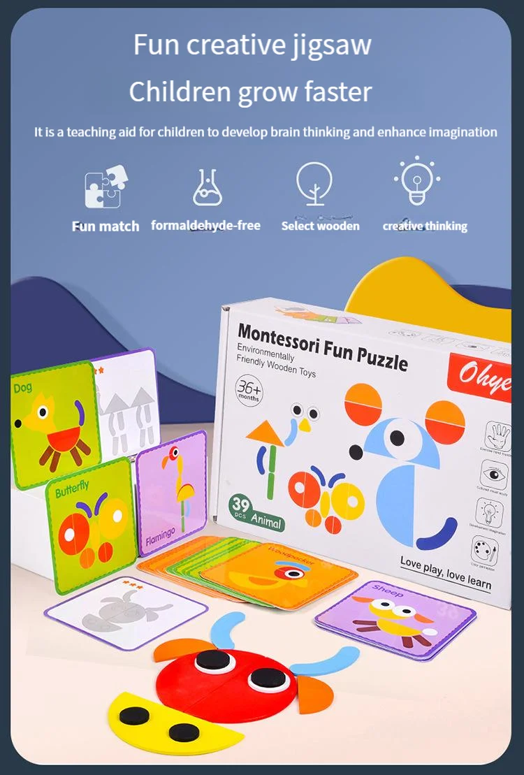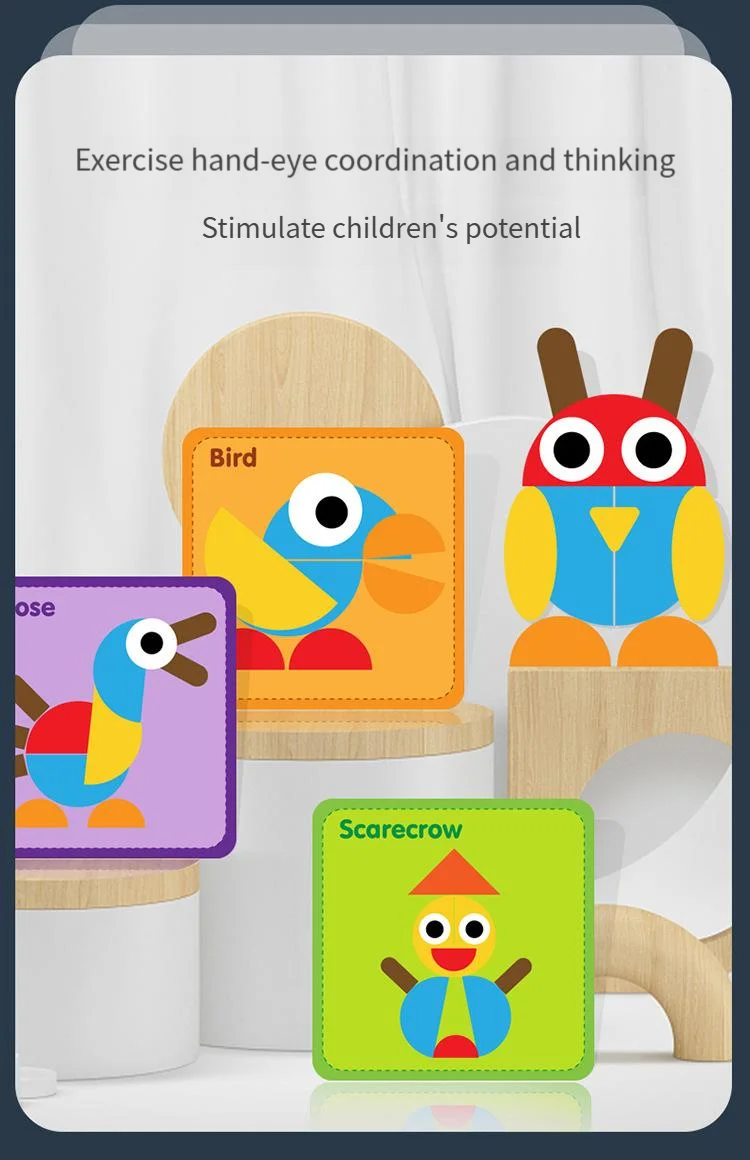 Montessori Children’s Educational DIY Jigsaw Puzzle Blocks Creative Wooden Geometric Puzzle Game Creative Play Learning Gift for