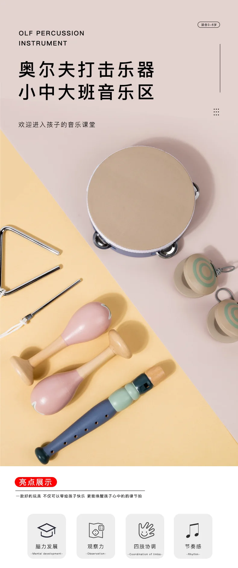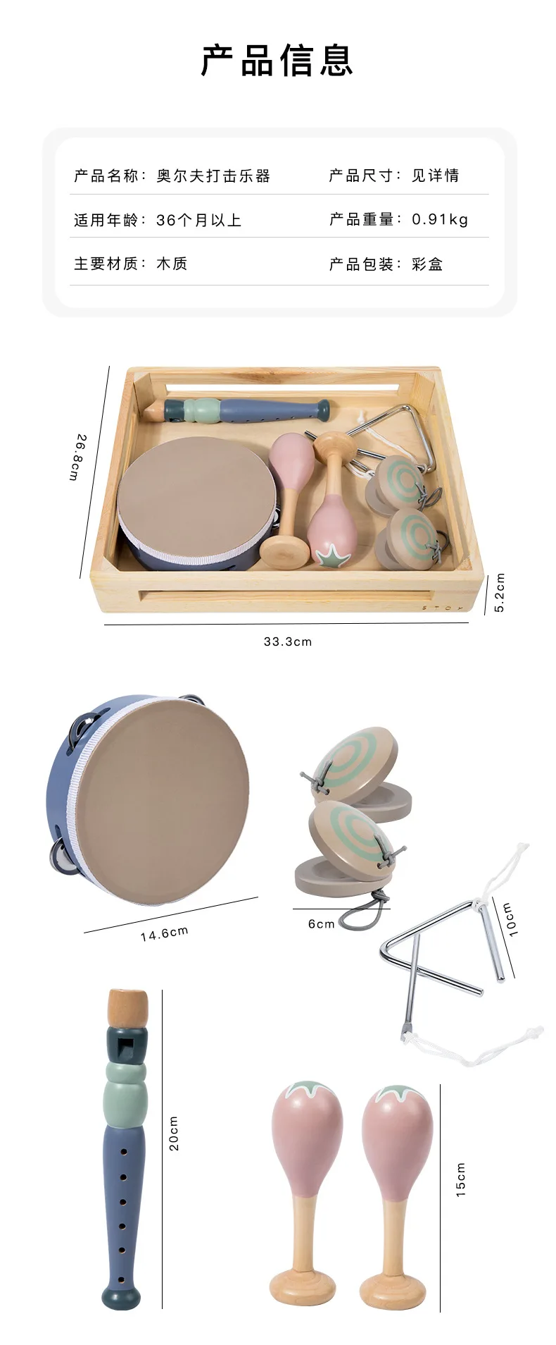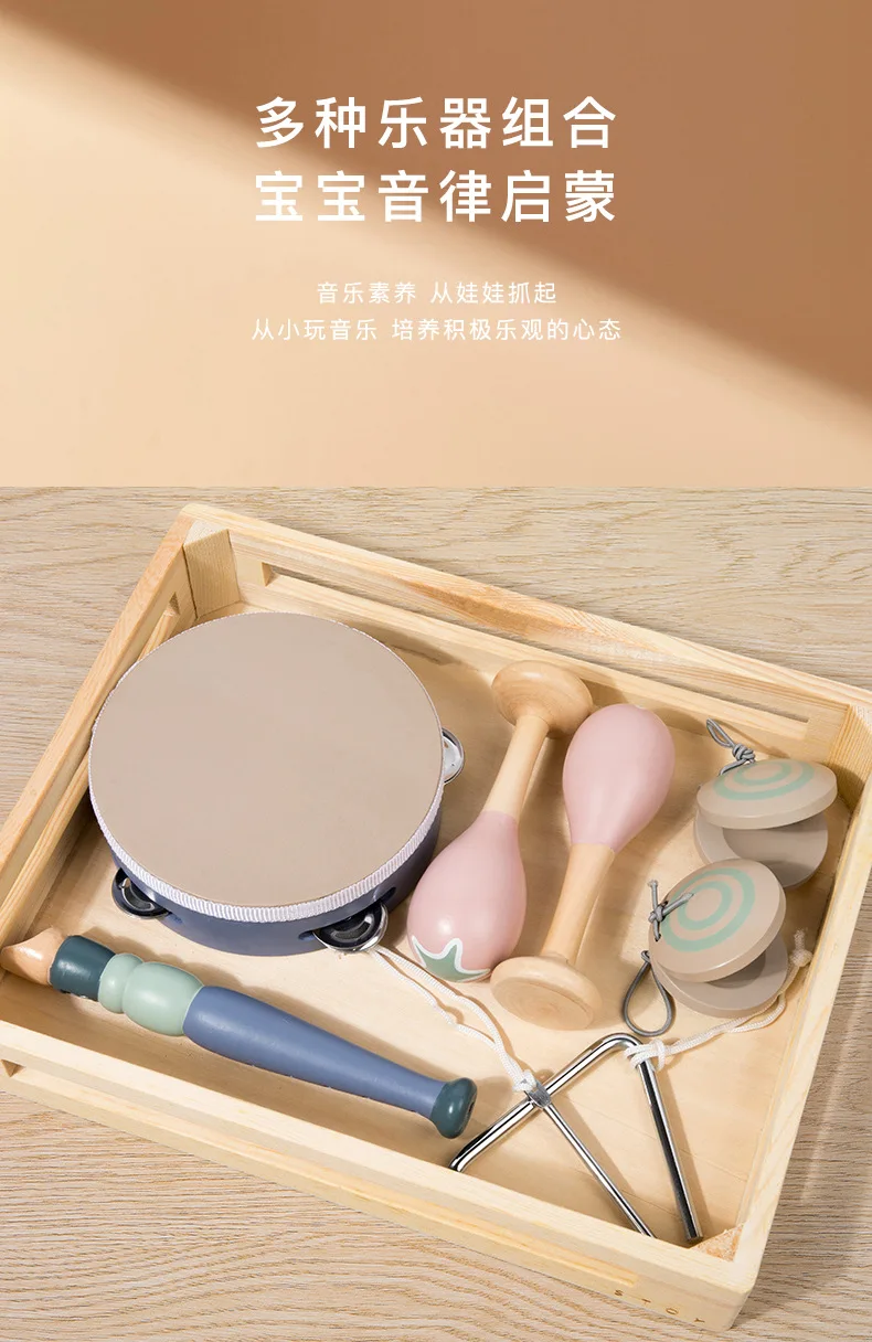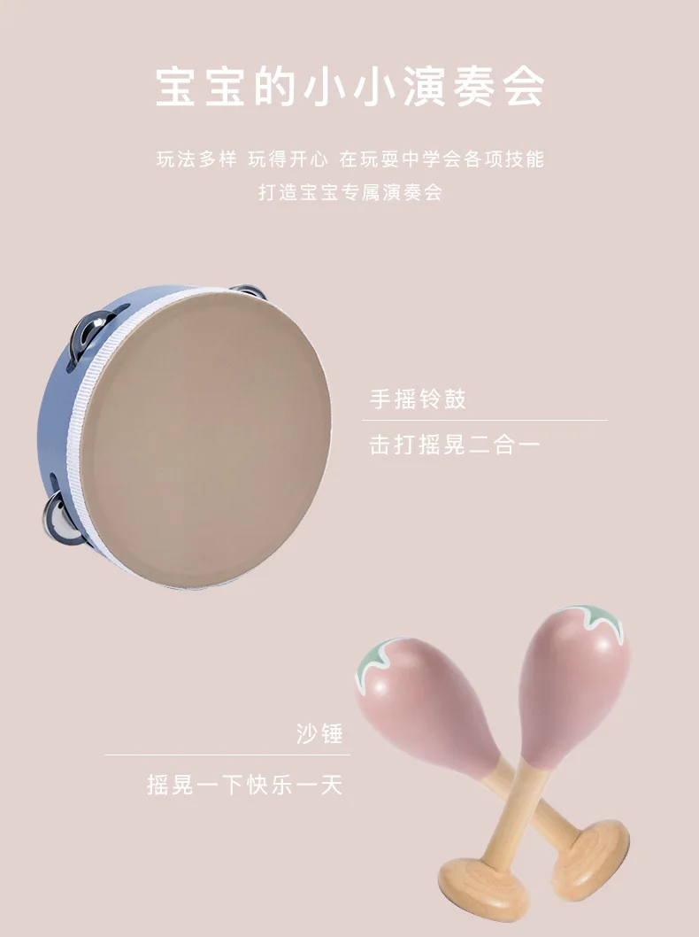 Montessori Inspired Educational Toys Set Wooden Musical Instrument Tambourine & Xylophone for Toddlers & Kids for Boys & Girls