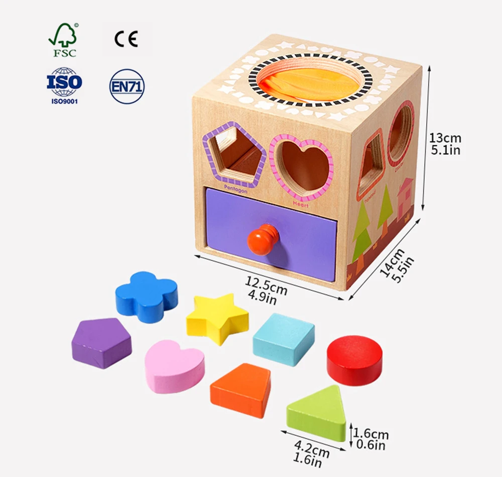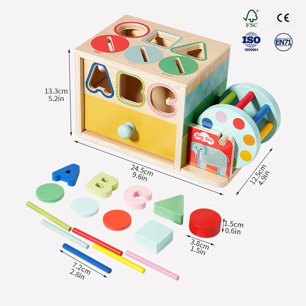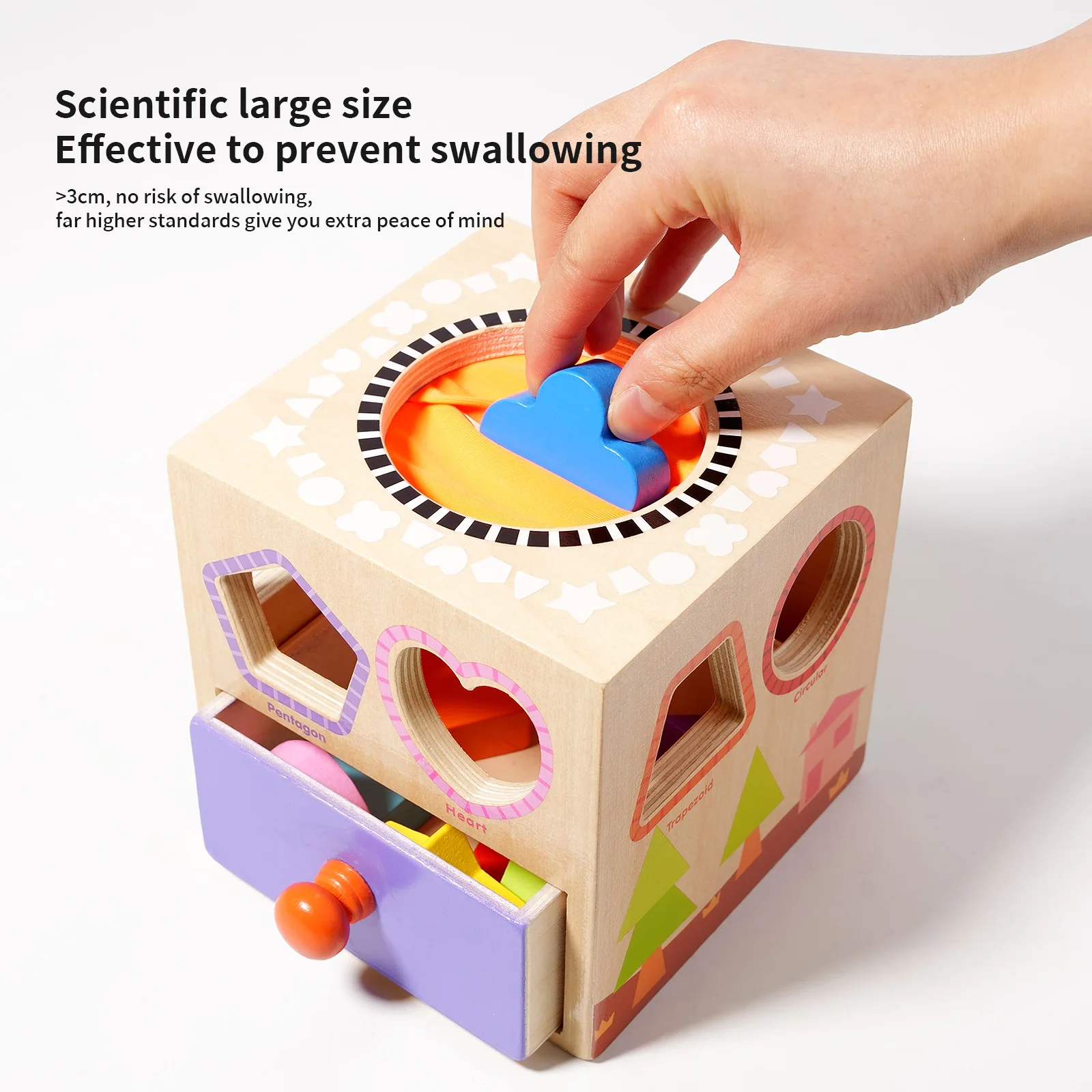 Montessori Multi-Functional Wooden Coin Box Sensory Shape Matching Toy for Early Educational Learning
