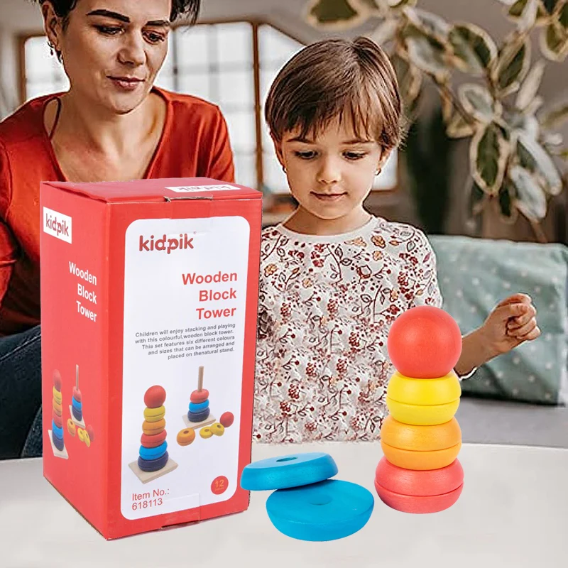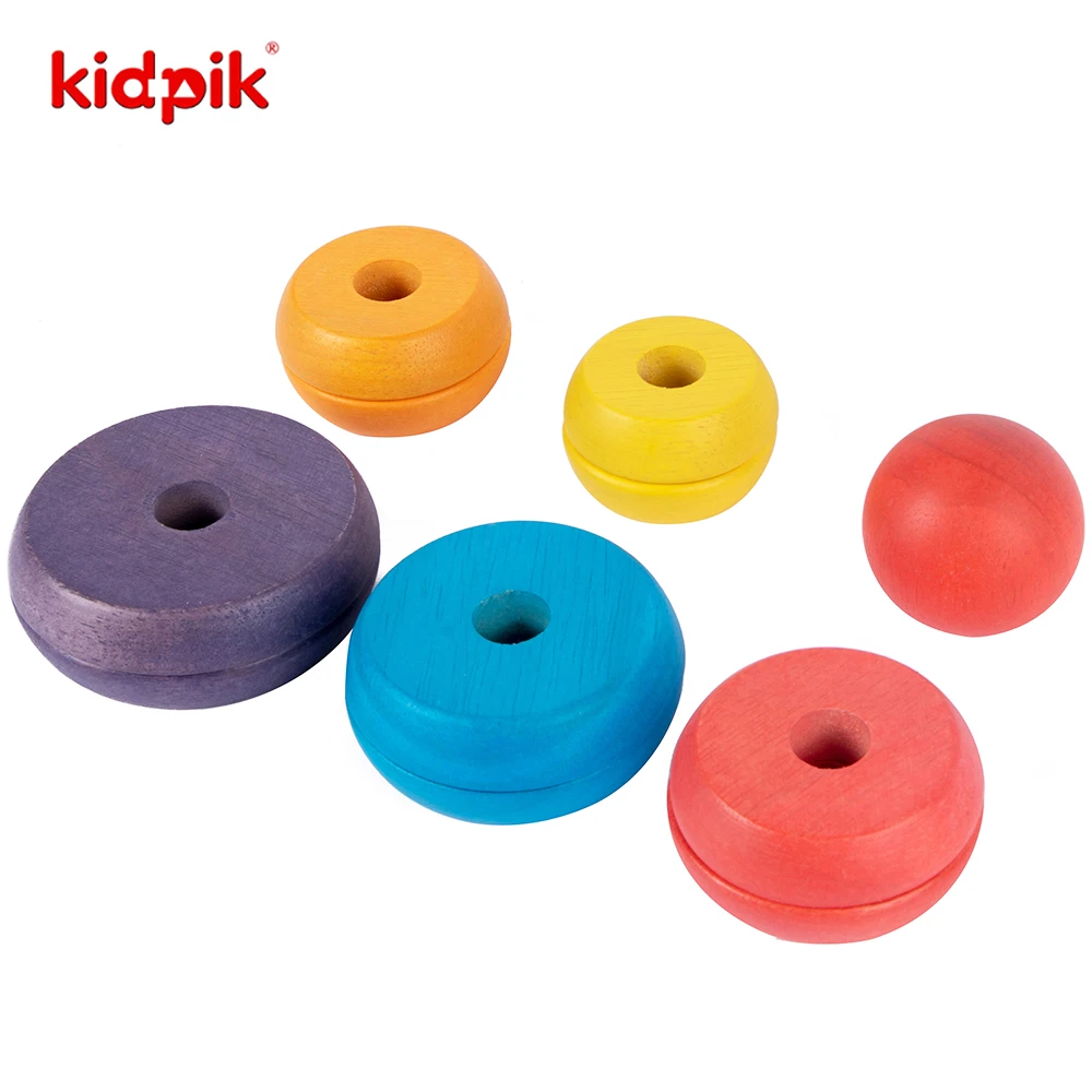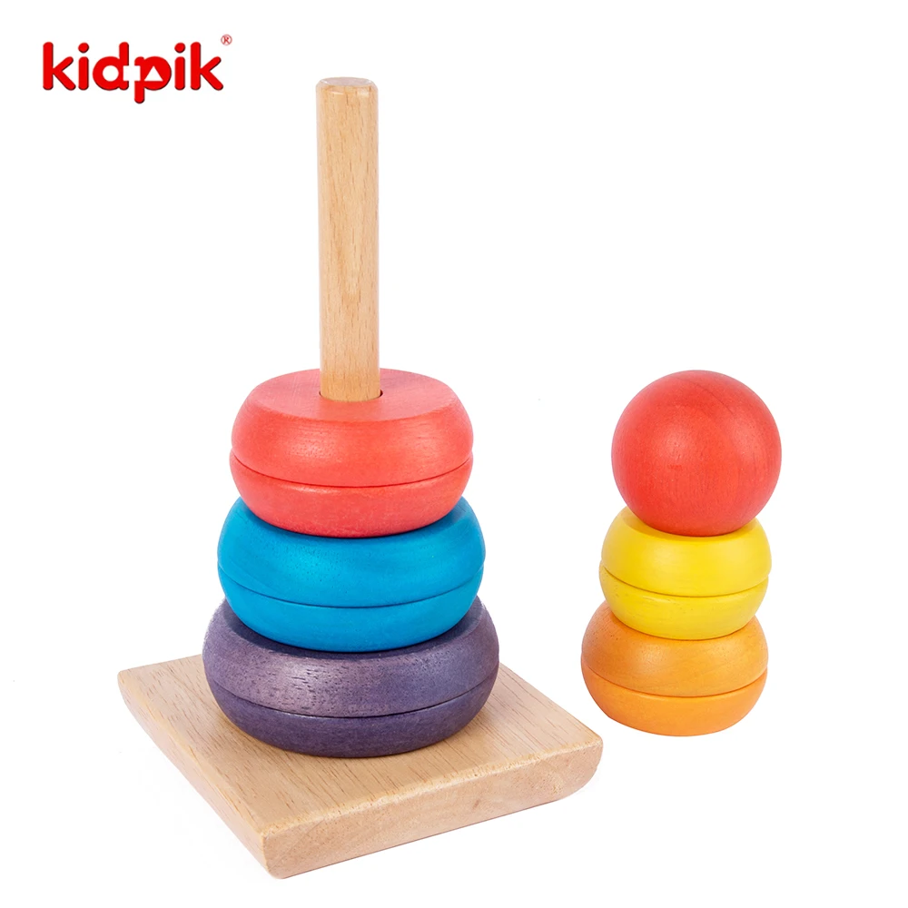 Montessori Toys 11 Layers Puzzle Early Education Wooden Rainbow Tower Stacking Toy Tower Geometric Building Blocks Puzzle Toy