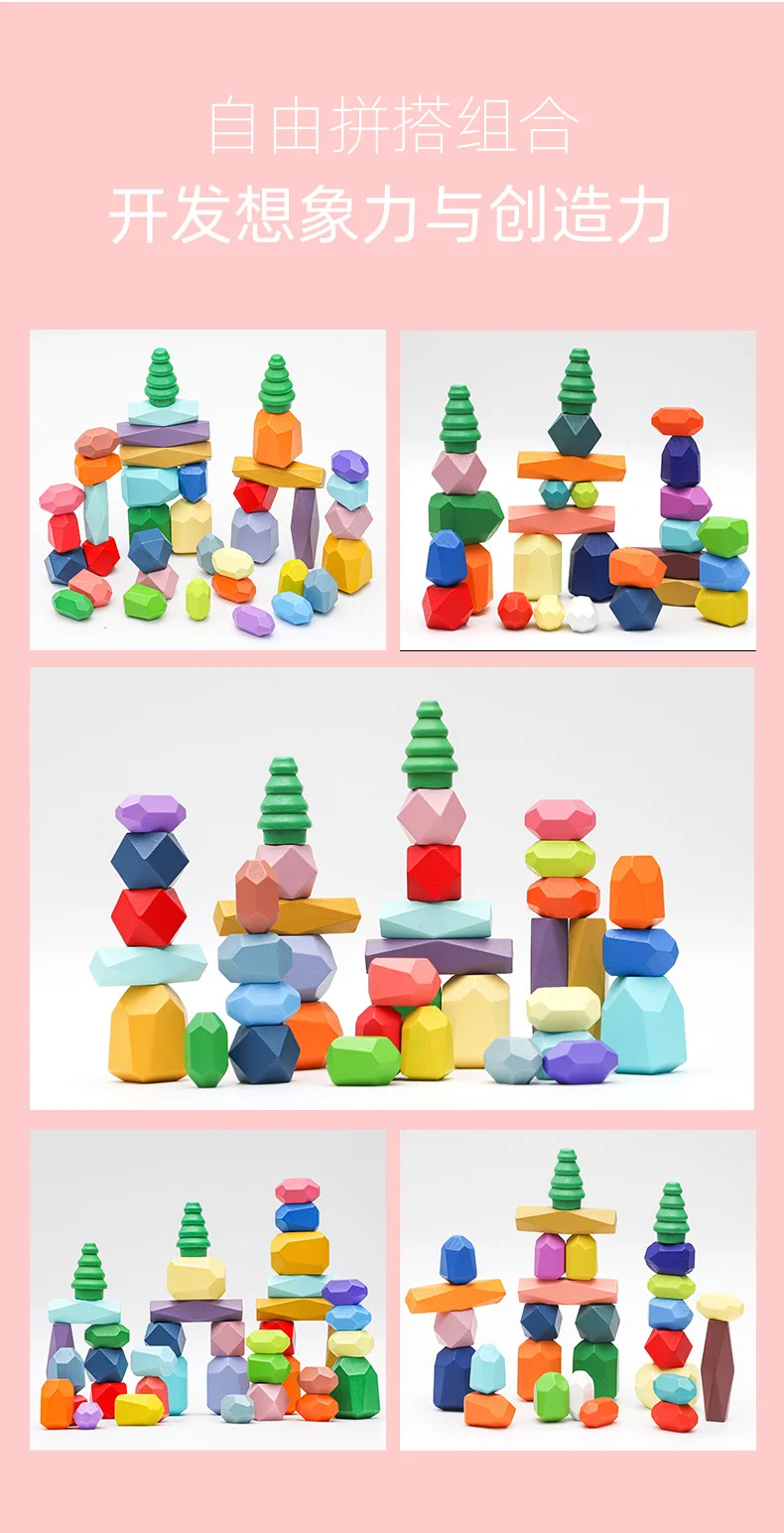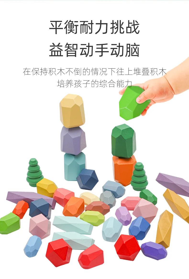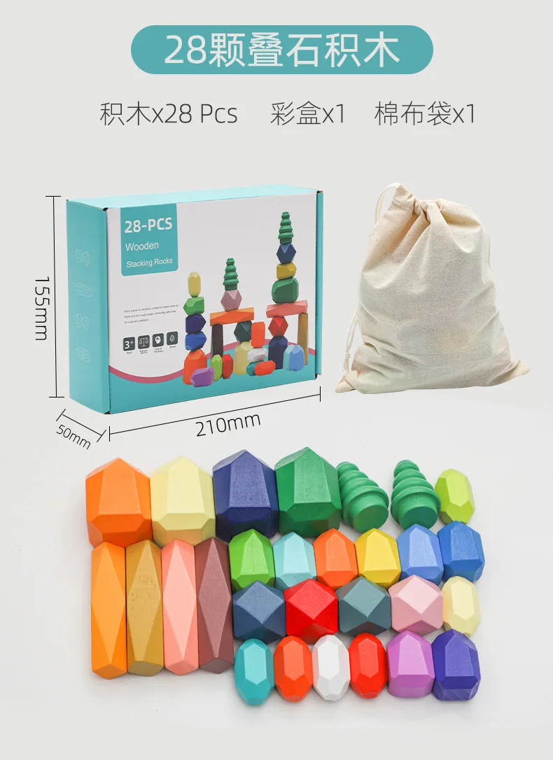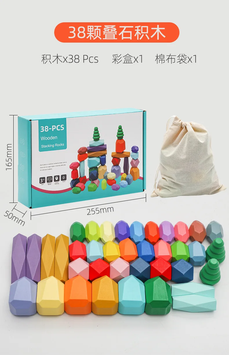 Montessori Toys 28Pcs 38Pcs Set Wooden Blocks Building Blocks Balancing Stones Game Wood Stacking Stones for Babies Children