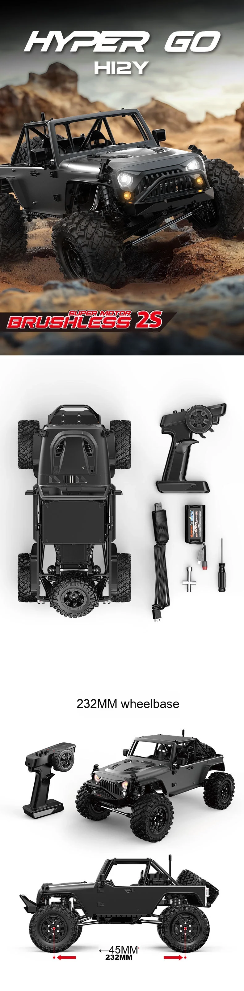 New H12Y 1:12 Scale Large Remote Control Induction Brushless RC Car Aluminum Alloy Servo Oil Impact LED Light Model Toy