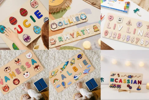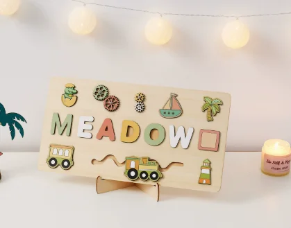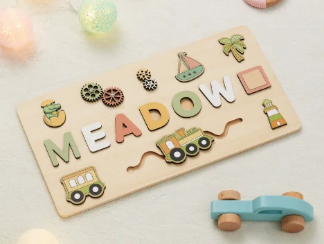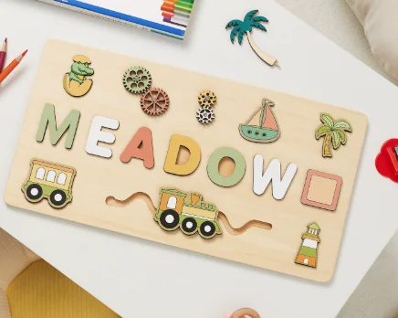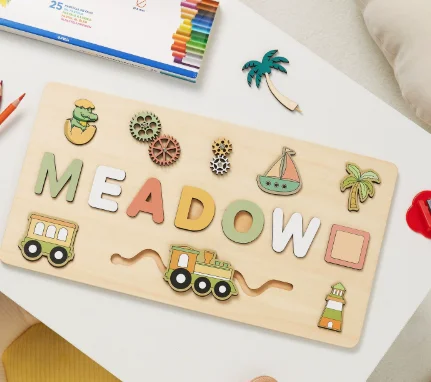 NovaCross Custom Logo Personalized Name 3D Shape Wooden Puzzle Board Educational Toy for Kids